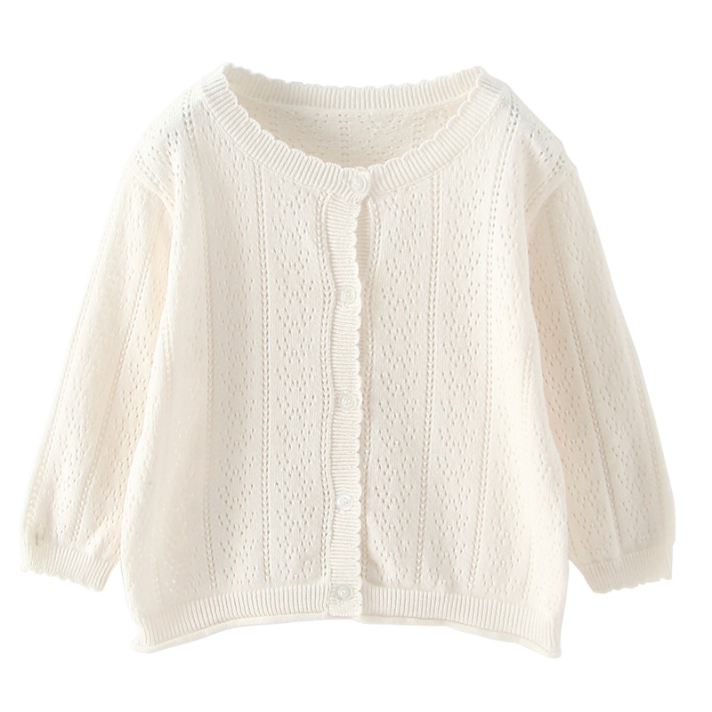 女童薄款针织开衫婴儿宝宝中小童红色镂空防晒空调服春夏搭配裙子