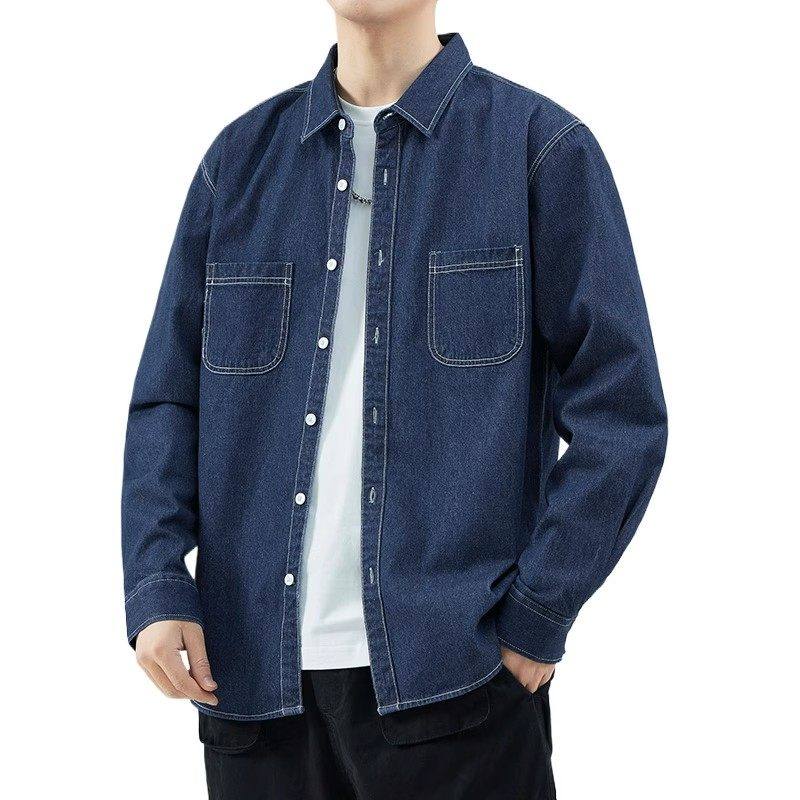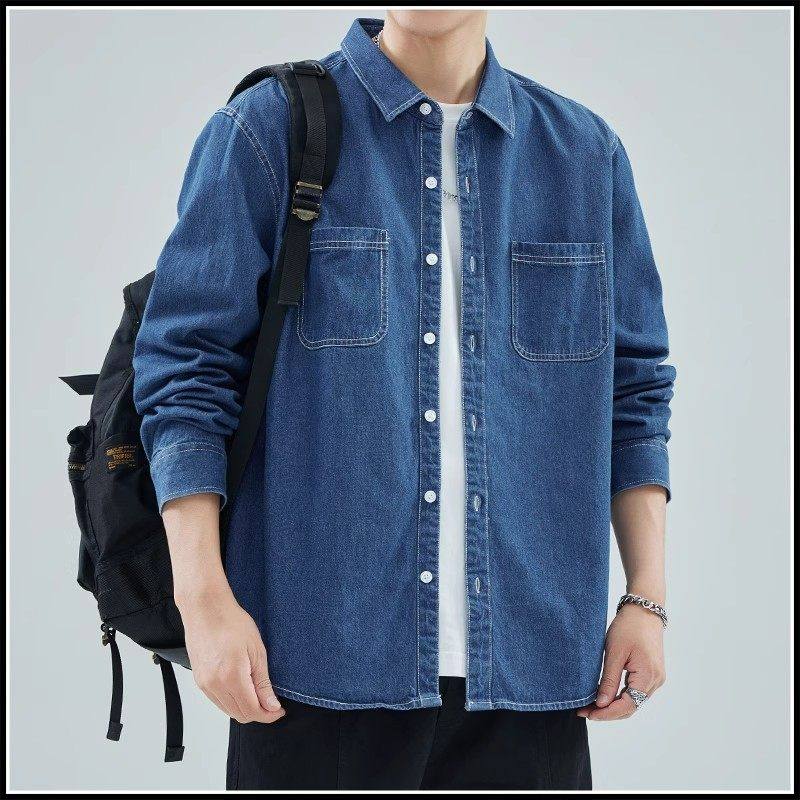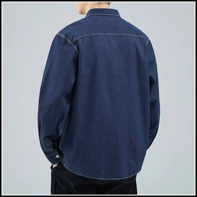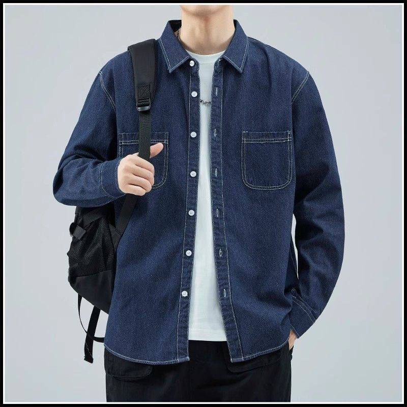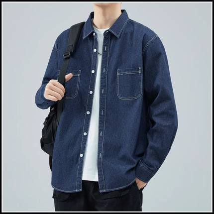 Yishion以纯男装正品官店牛仔衬衫男长袖秋冬季宽松纯棉衬衣男士