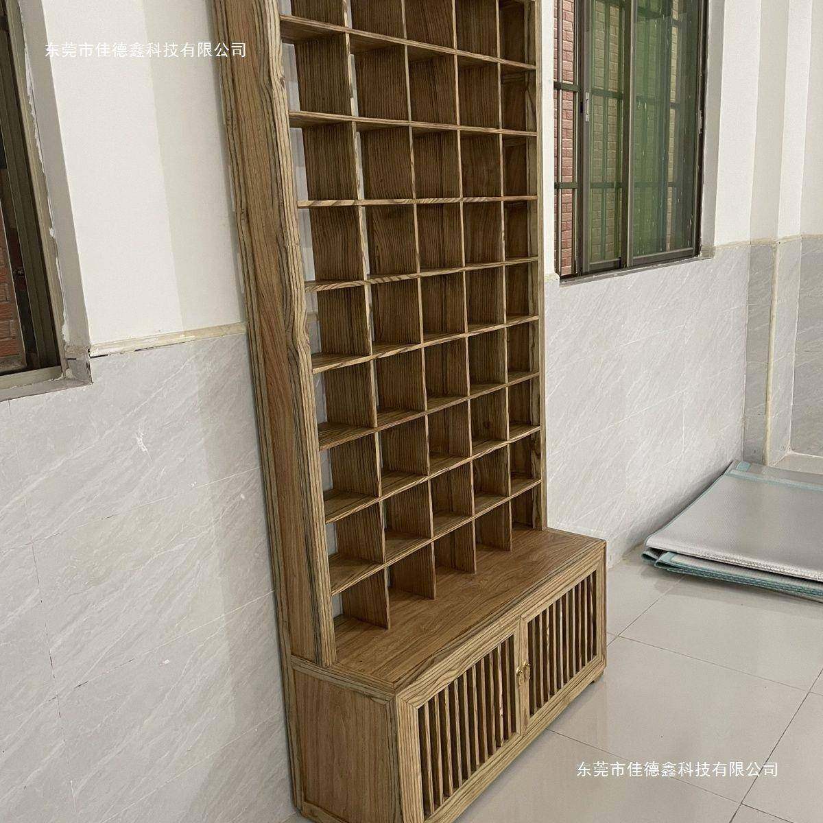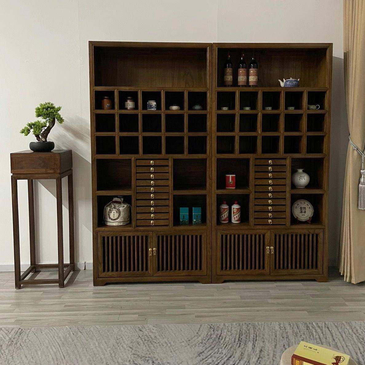 榆木新中式实木博古架置物架紫砂壶格子收纳柜茶杯茶具带灯展示架
