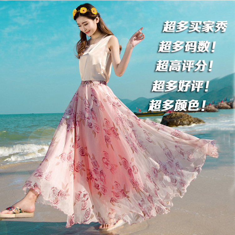 波西米亚雪纺印花半身裙长裙大码碎花拖地沙滩裙8米大摆仙女裙夏