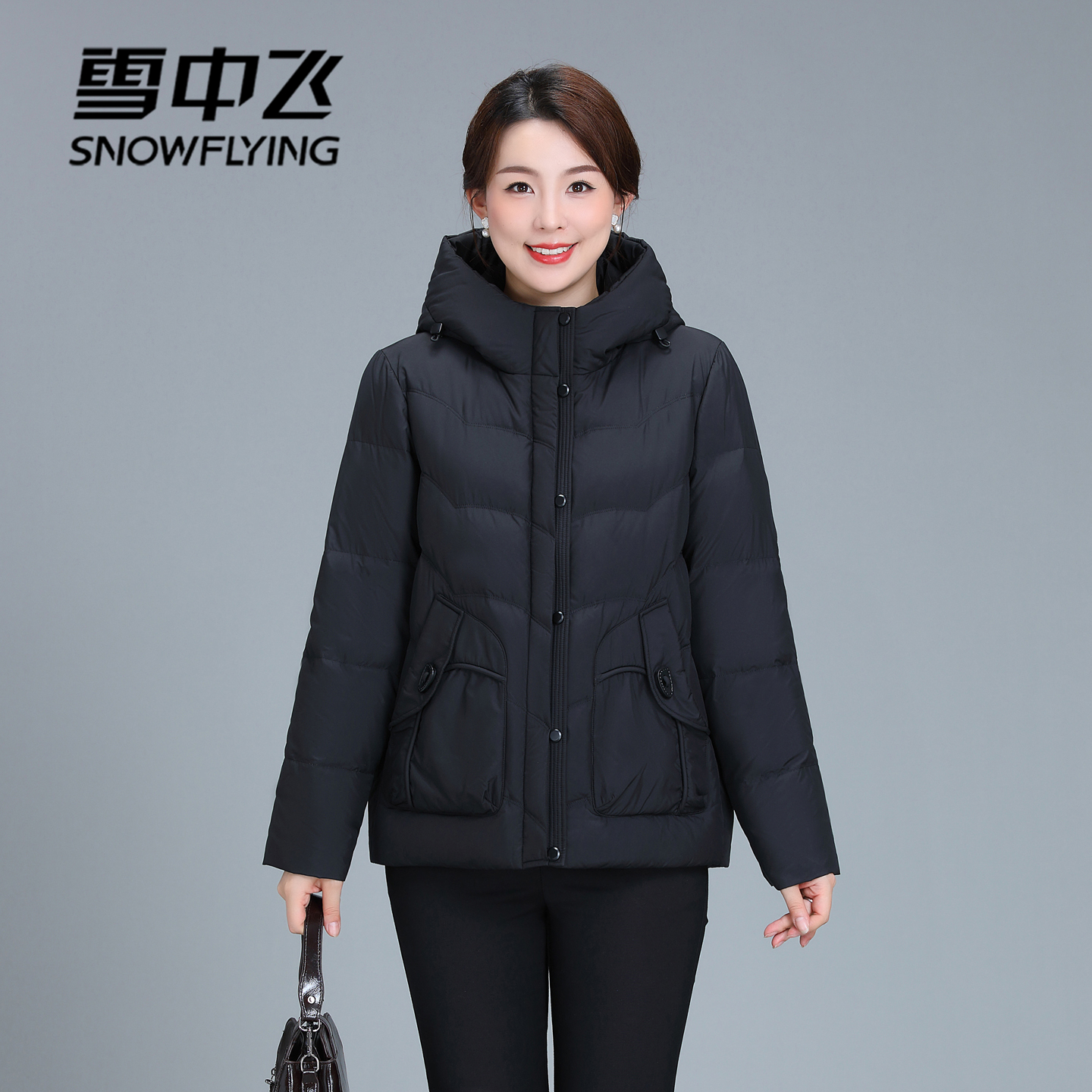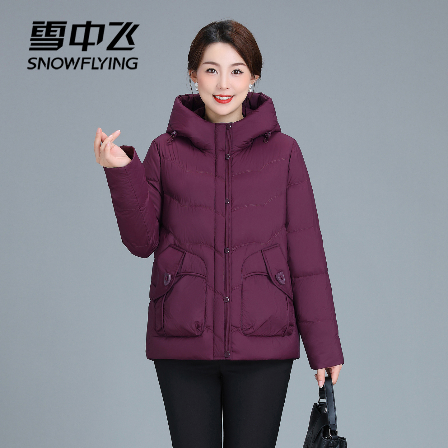 雪中飞冬季短款羽绒服女中老年大码妈妈装保暖女外套防寒服小个子