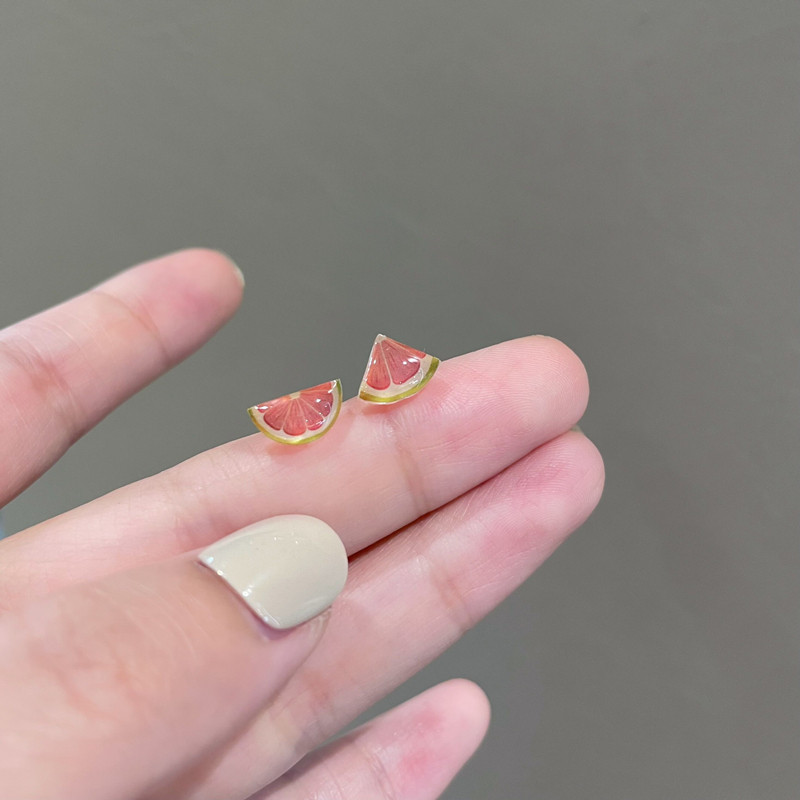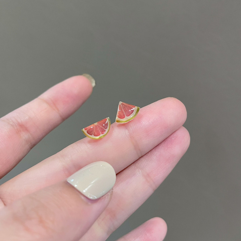 春季甜美小清新不对称西柚S925银耳钉创意小巧百搭水果耳饰耳夹女