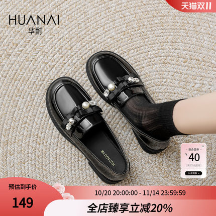 华耐厚底乐福鞋女2025秋季新款粗跟JK鞋英伦风小皮鞋百搭浅口单鞋