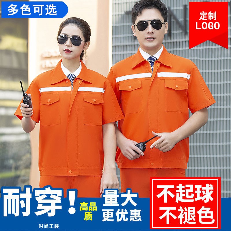 夏季短袖反光条工作服套装男薄款耐磨汽修车间厂服上衣定制劳保服