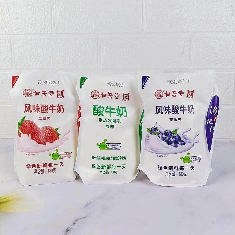 白马寺发酵酸牛奶180g/袋原味草莓蓝莓多口味新鲜酸甜网红整箱
