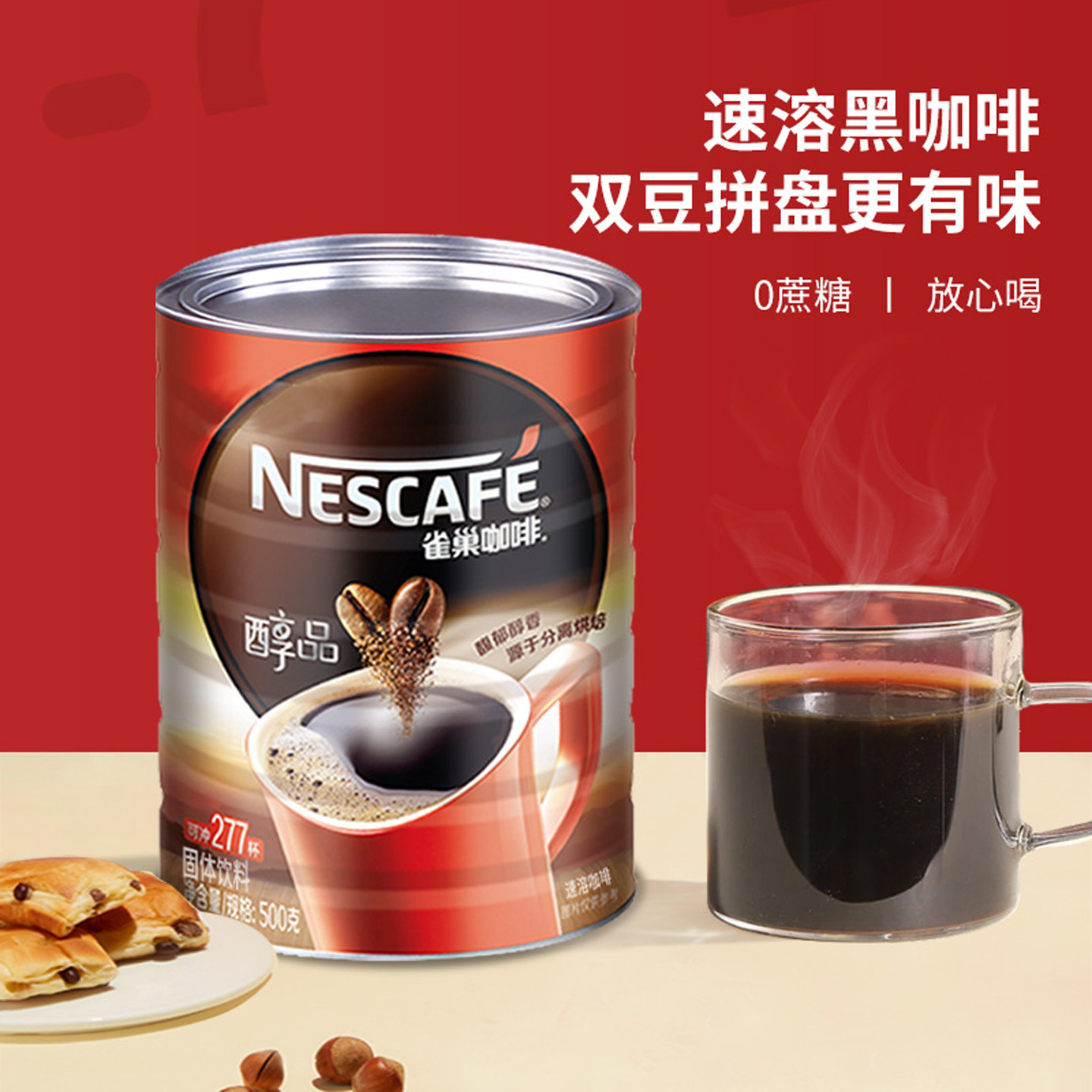 雀巢醇品黑咖啡500g罐装速溶无蔗糖纯咖啡粉提神健身可冷热冲泡