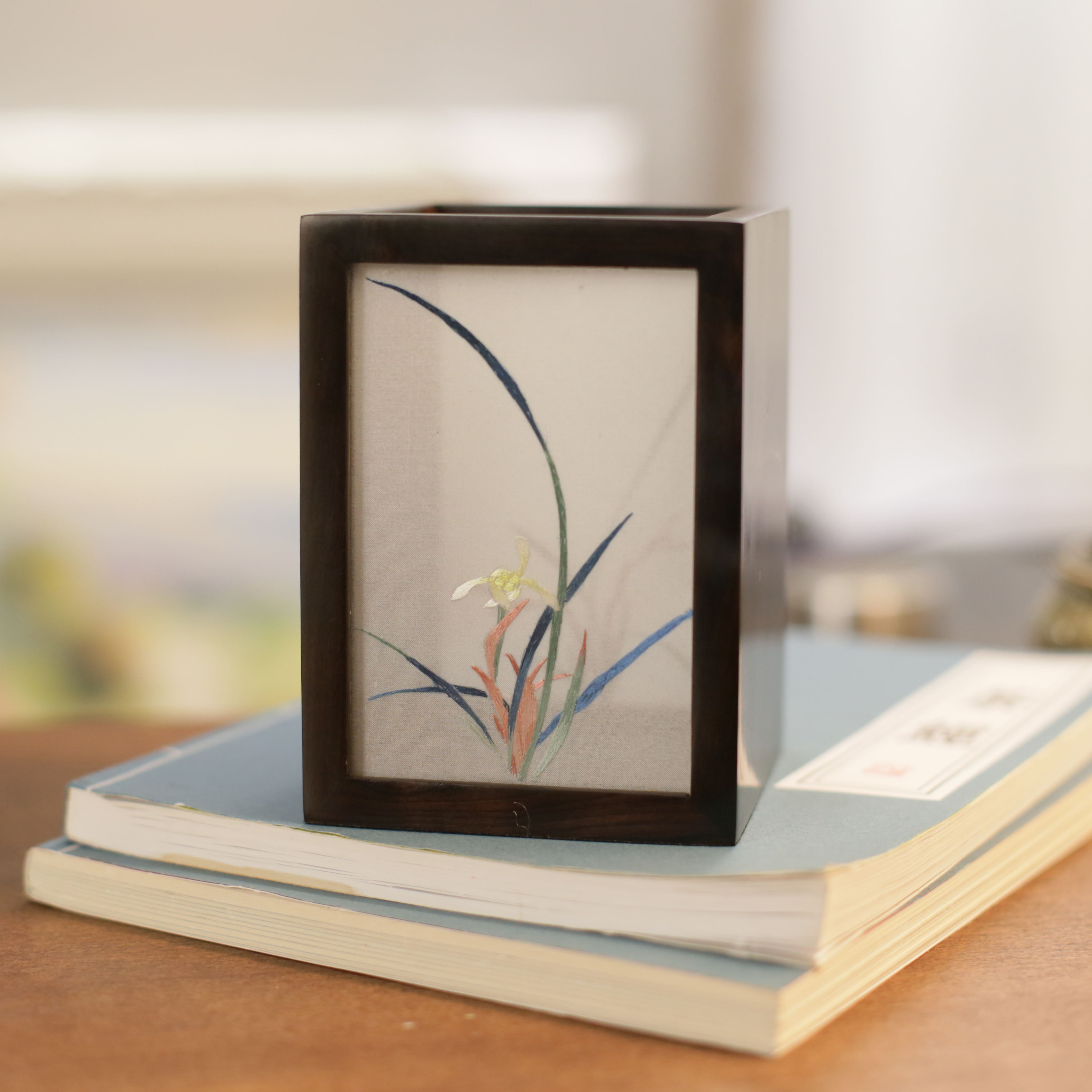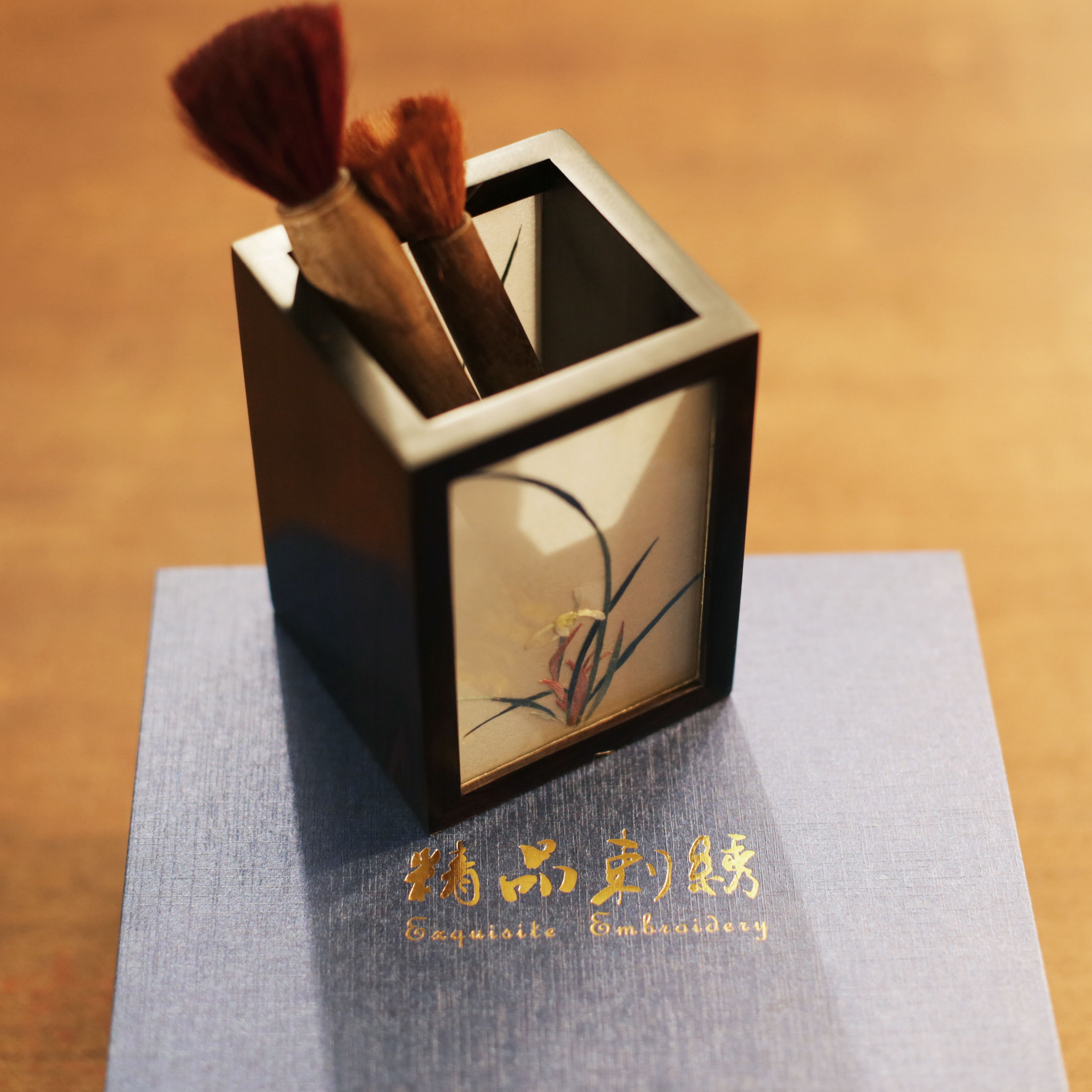 湘绣礼品手工刺绣双面绣紫光檀木笔筒创意中国风企业礼物精品苏绣