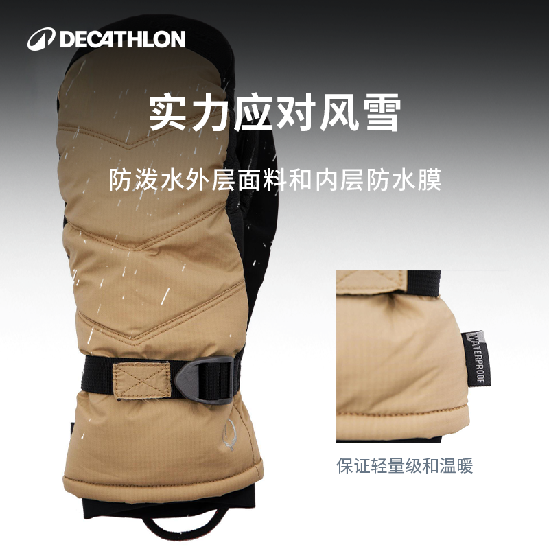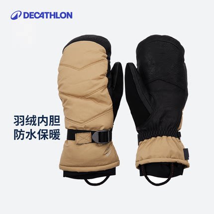 迪卡侬手套冬季滑雪男运动羽绒保暖女户外闷子防水连指皮手套OVWG