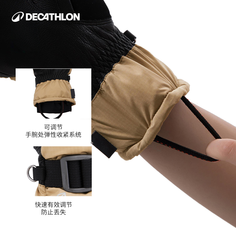 迪卡侬冬季羽绒皮手套滑雪闷子