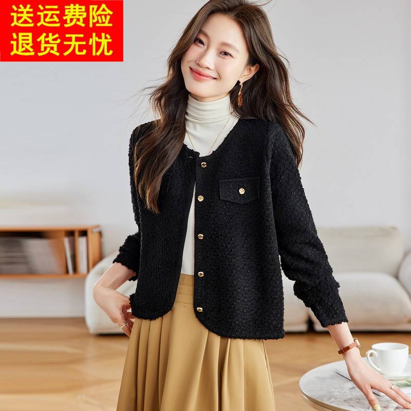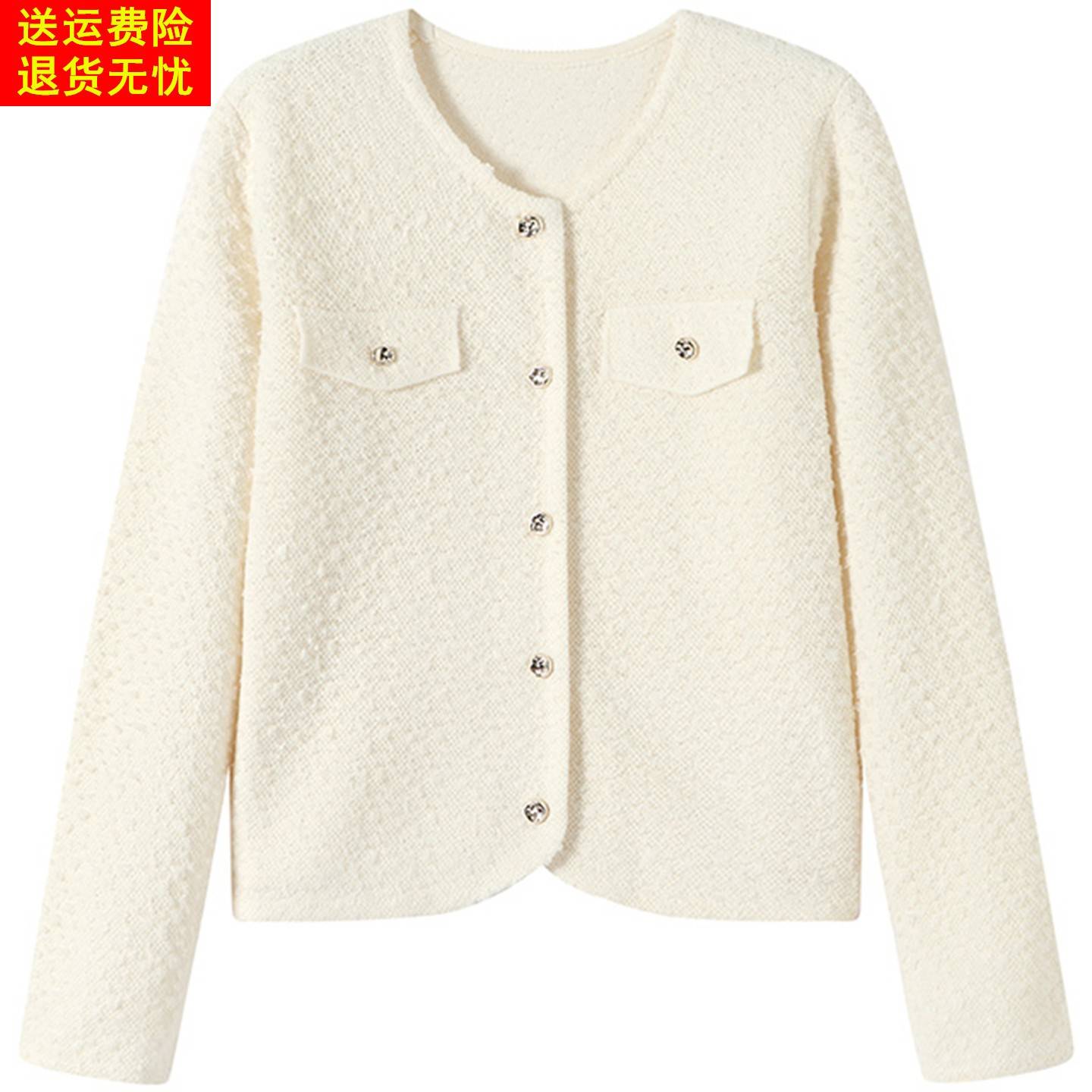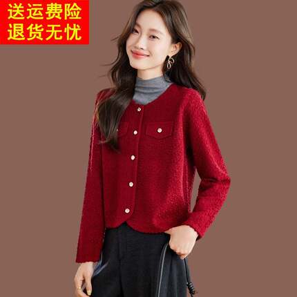 小香风羊毛针织开衫女春秋新款高级短款红色上衣配裙小款毛衣外套