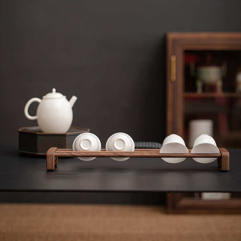 胡桃木茶杯架收纳架沥水置物架晾杯架实木杯托功夫茶具茶道配件