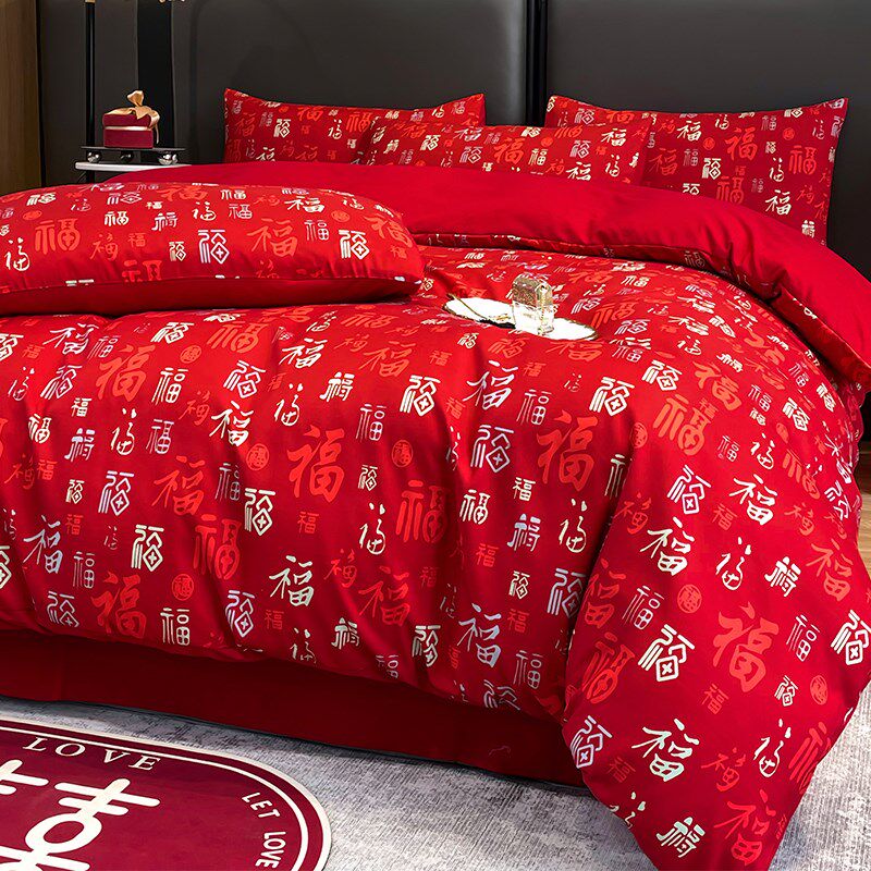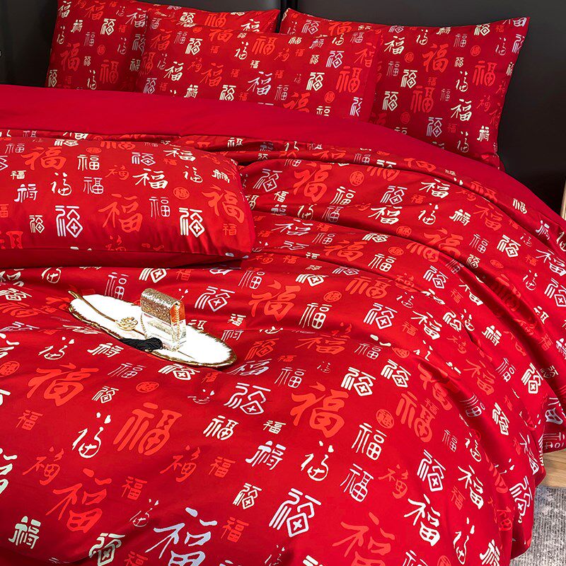大红色婚庆四件套百福喜被新婚床单被套新房结婚床上用品