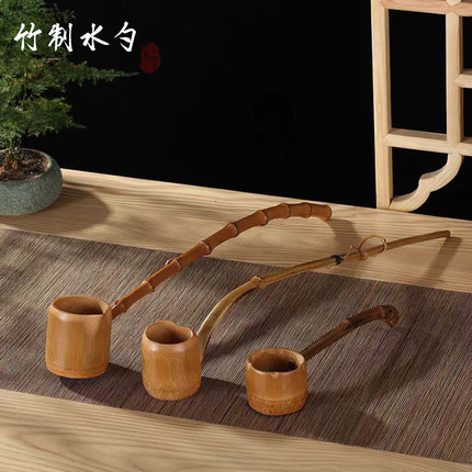 老式竹子打水勺长柄水瓢竹根竹瓢分酒勺舀酒分茶勺器酒提子竹茶勺