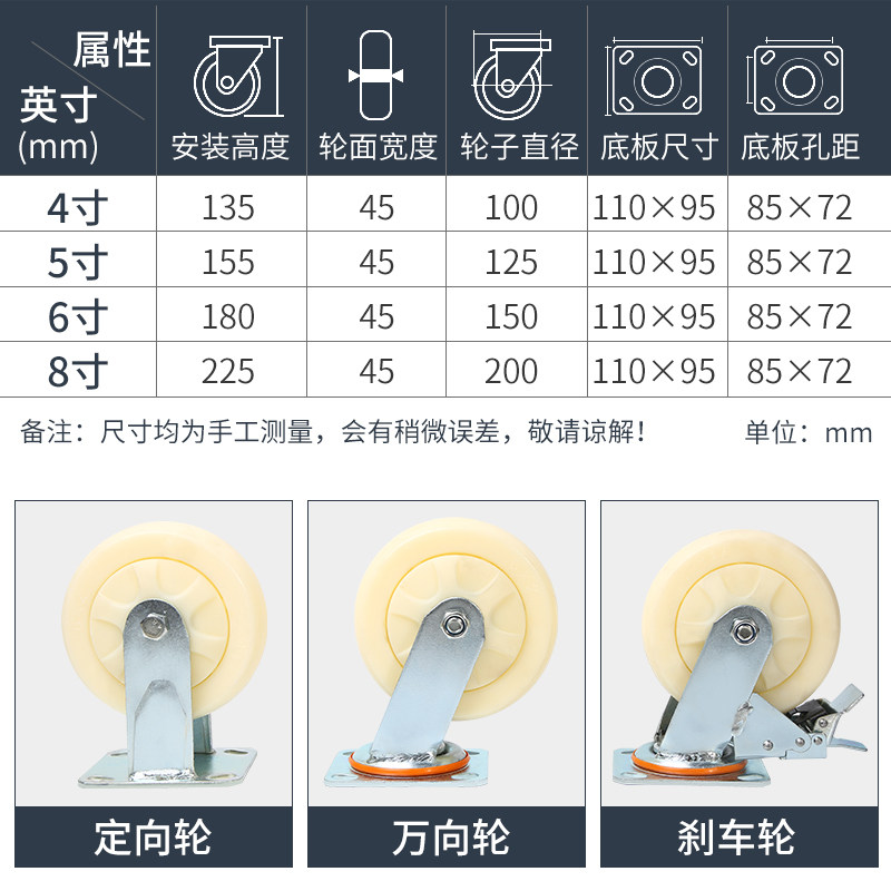 万向轮轮子重e型脚轮6寸尼龙轮4寸5寸8寸平板手推车拖车防缠绕固