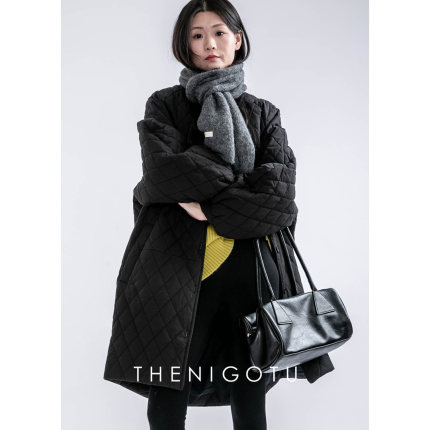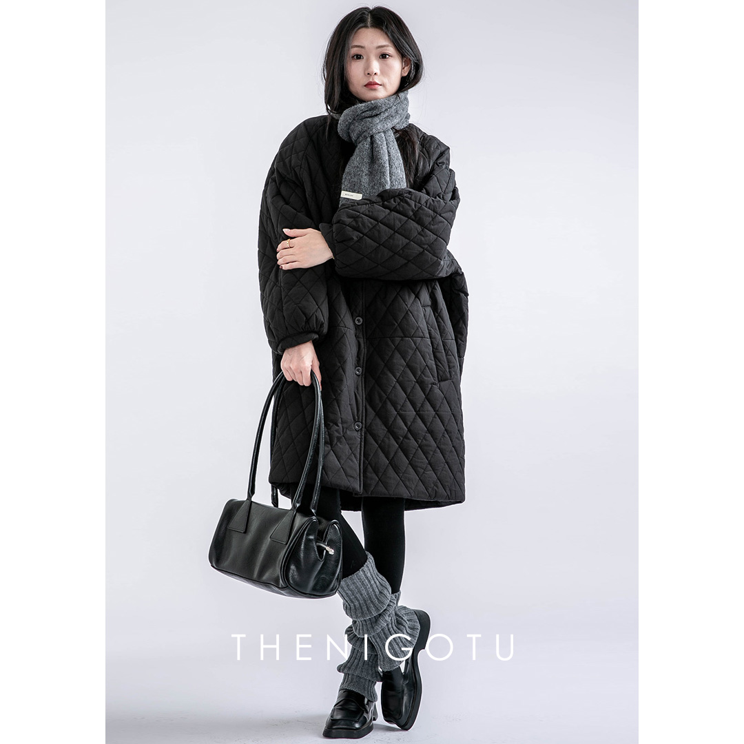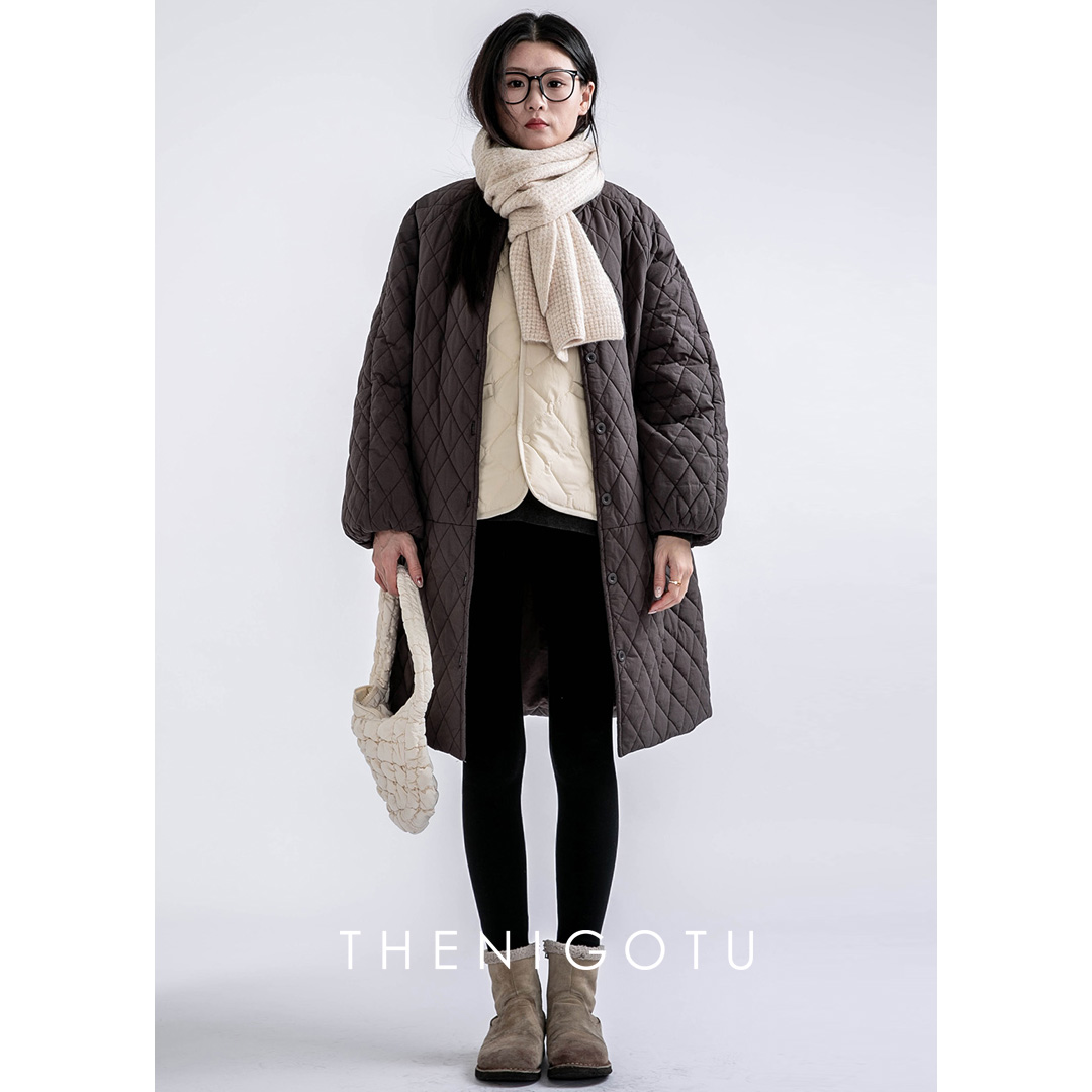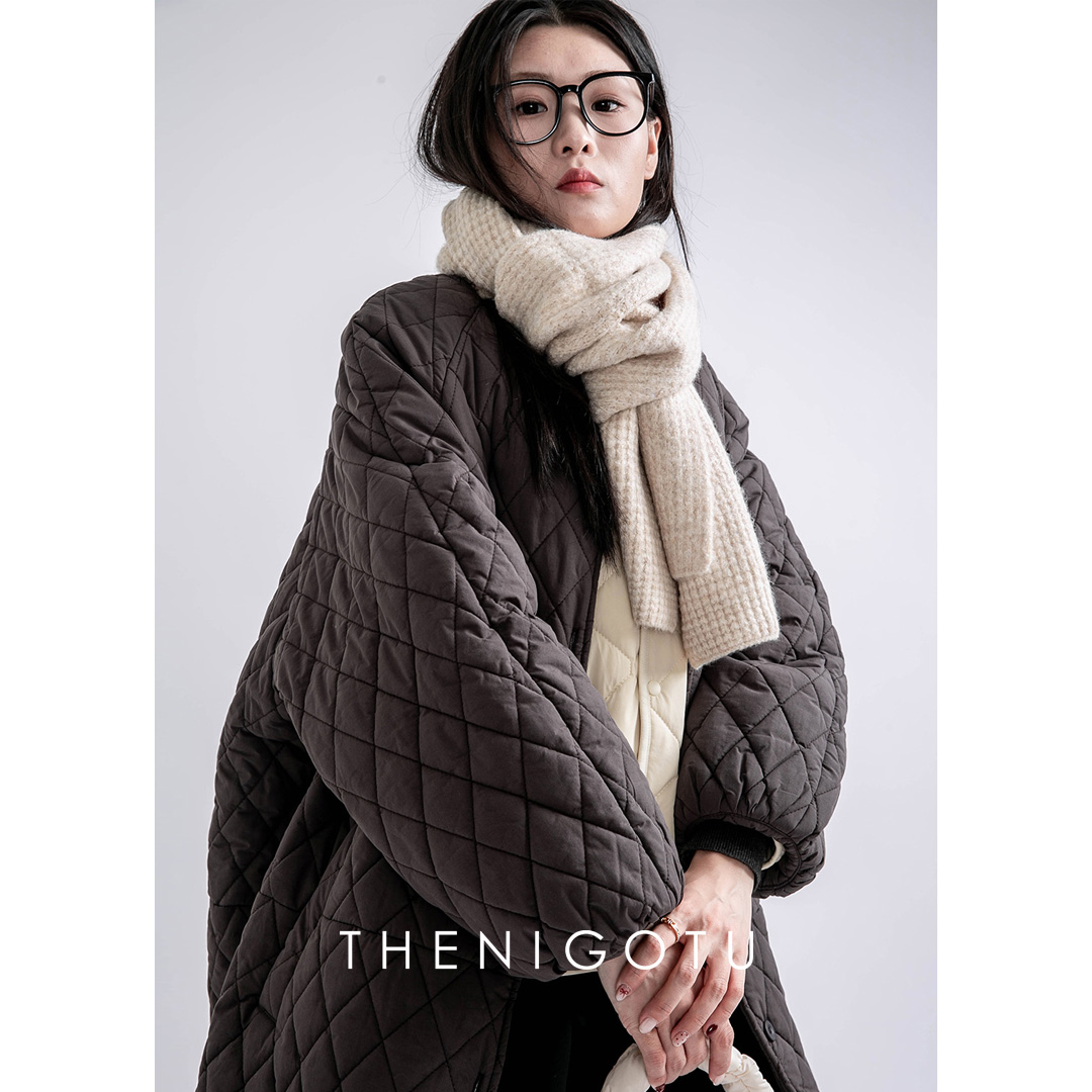 中长款日系菱格棉服2024年冬季