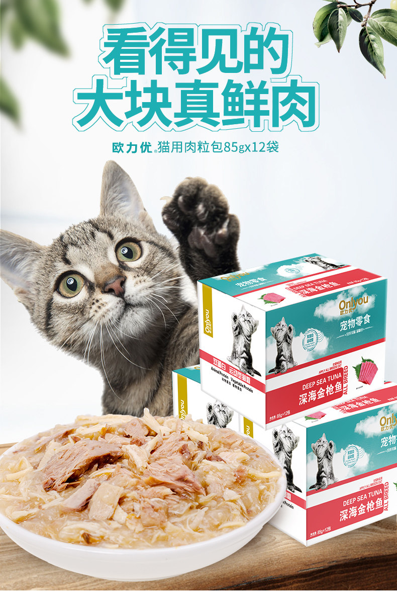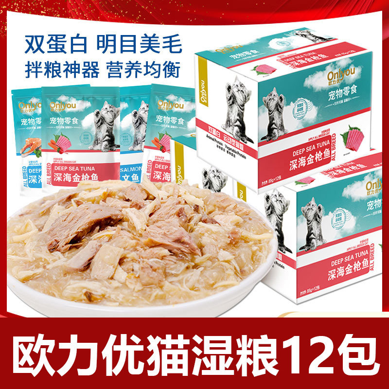 欧力优 猫咪妙湿粮鲜包零食三文鱼金枪鱼鲜封软罐头85g*24包混拼