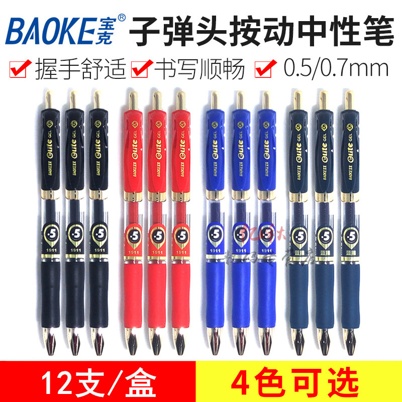 宝克按动中性笔蓝黑处方笔0.5 签字笔0.7黑色水笔 PC1913医生笔 按动中性笔墨蓝黑色水笔子弹头替换芯办公用