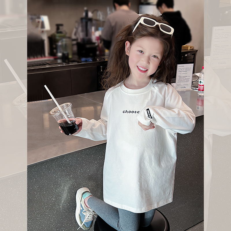 纯棉儿童中长款白t恤女童洋气上衣大童装长袖打底衫2025春秋新款