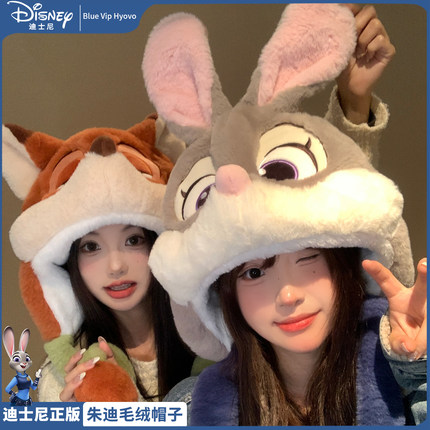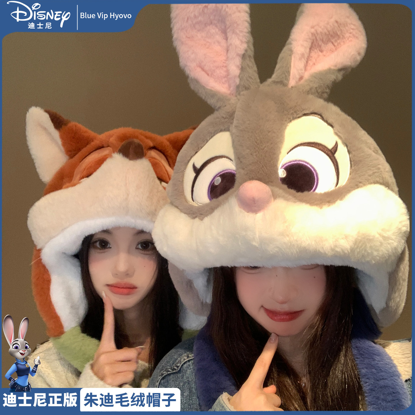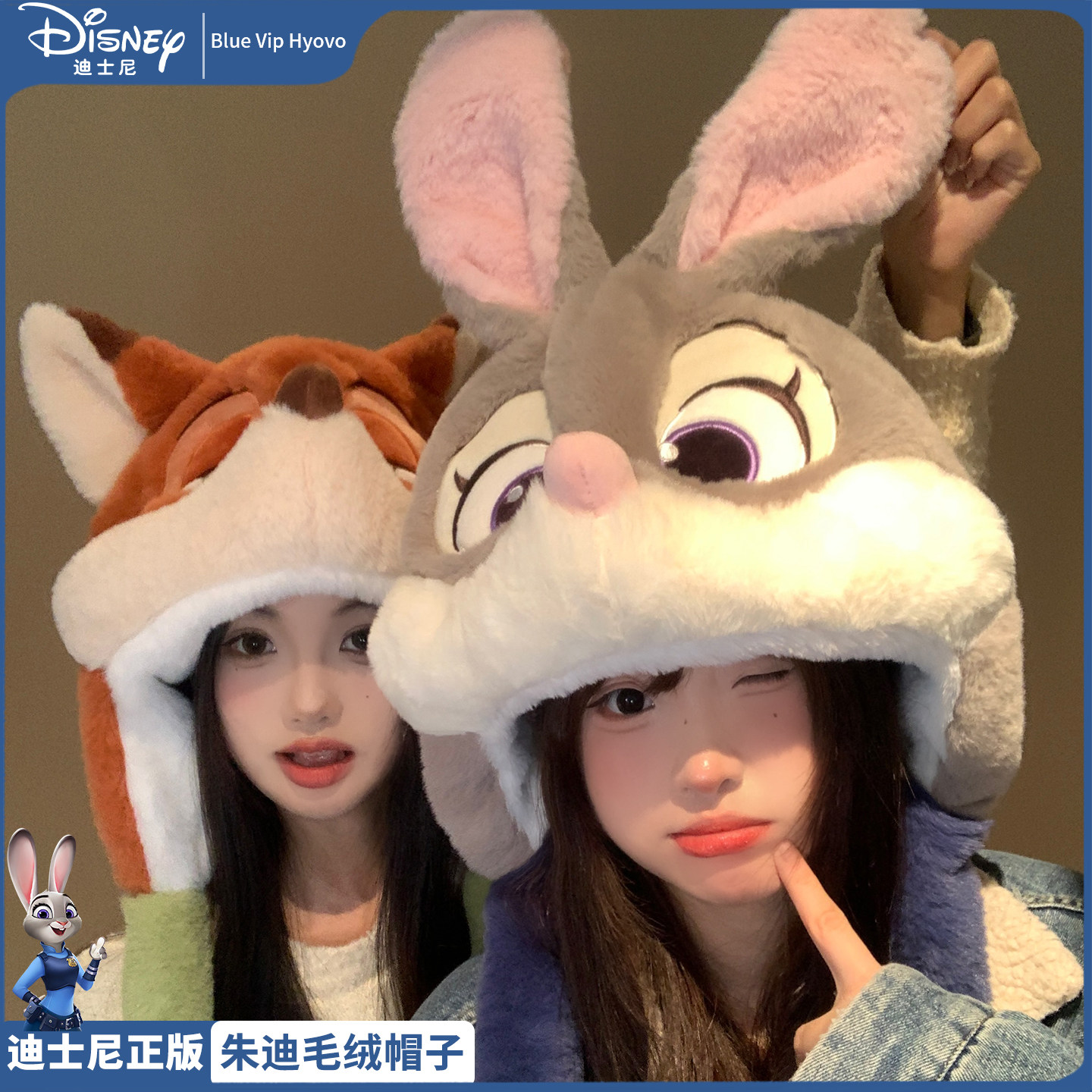 迪士尼可爱尼克朱迪毛绒帽子女冬季加厚保暖防寒护耳雷锋帽情侣潮