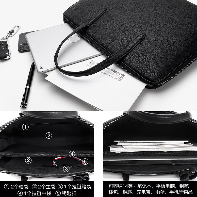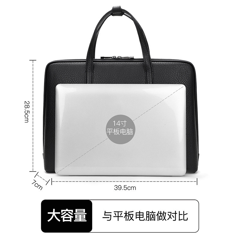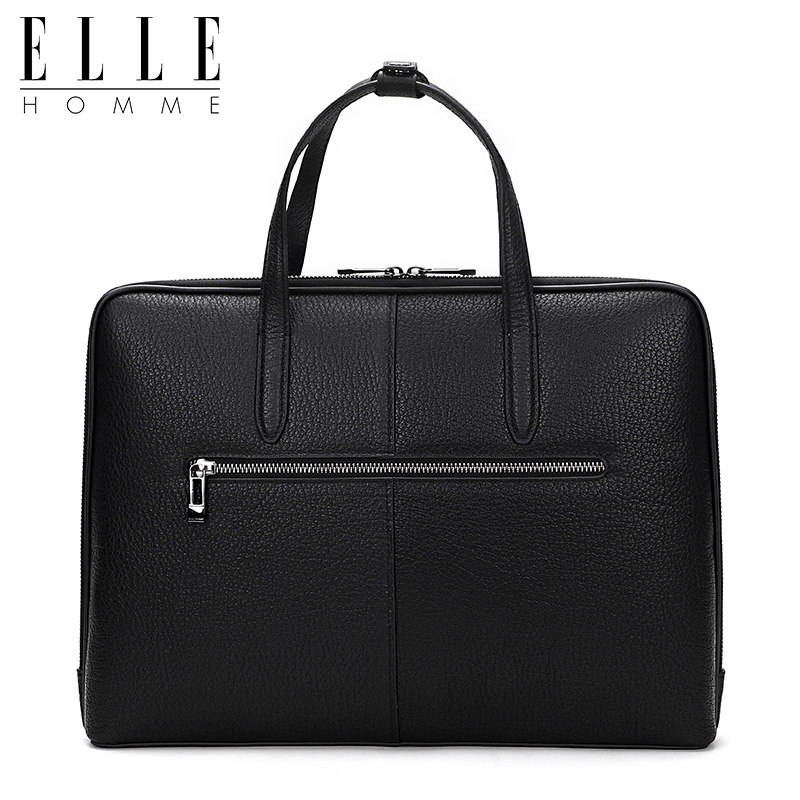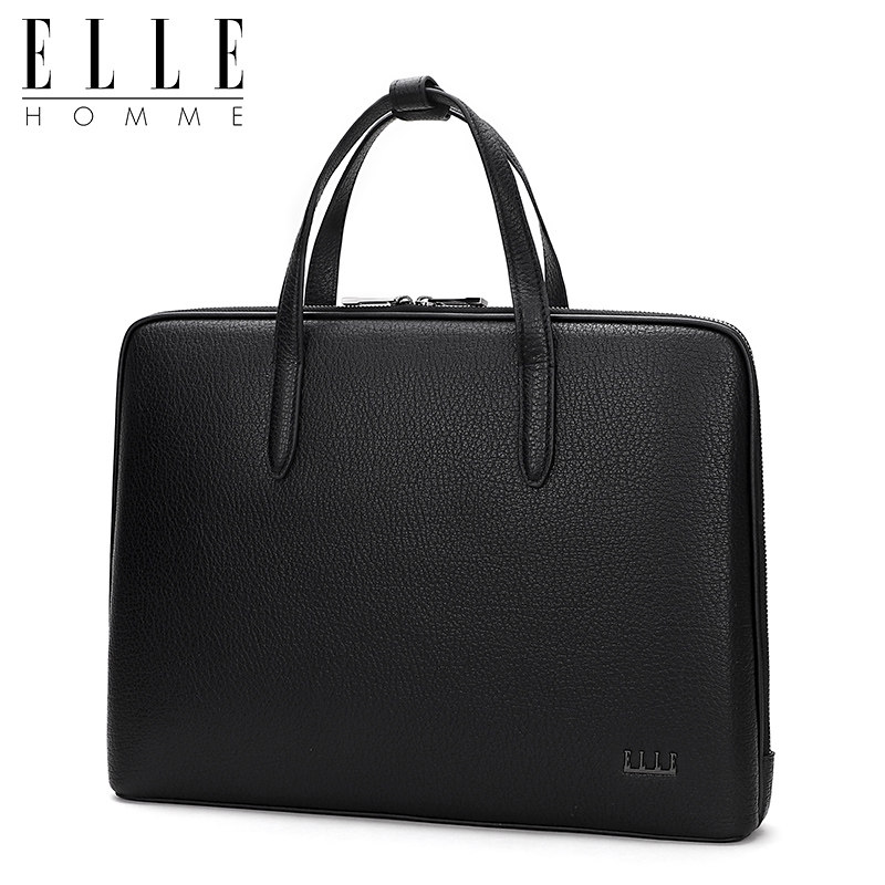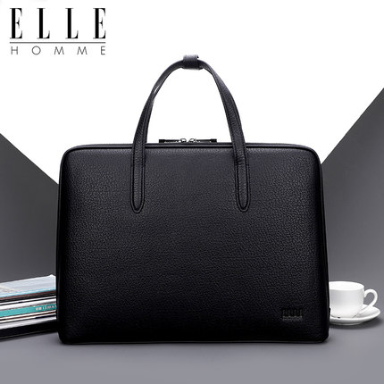 ELLE HOMME真皮包男士手提包商务青年横款公文包头层牛皮商务男包