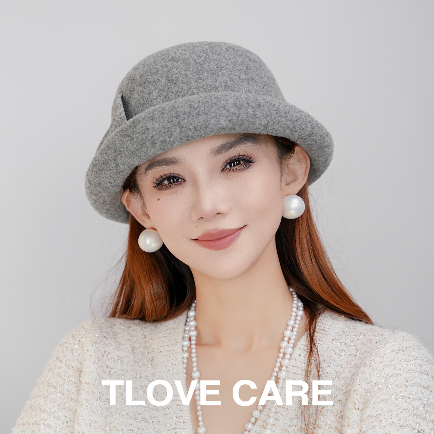 9901女士秋冬季新款盆帽户外休闲韩版羊毛帽子卷边短檐保暖渔夫帽