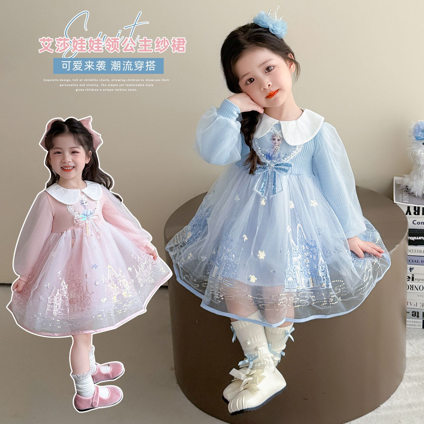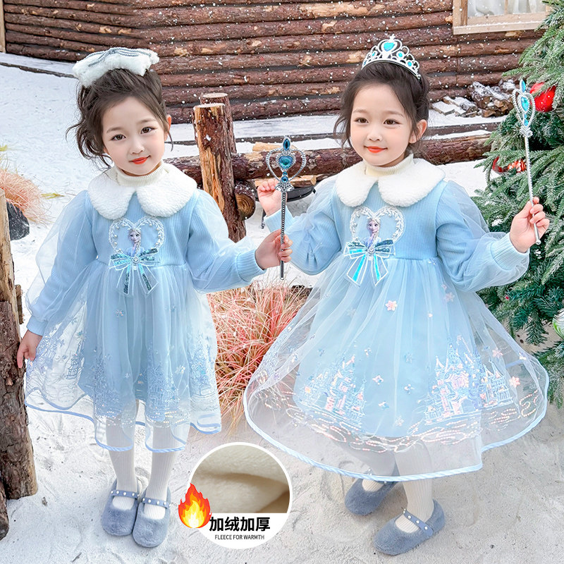 女童爱莎公主裙2025冬装新款裙子冬裙小女孩生日儿童艾莎连衣裙女