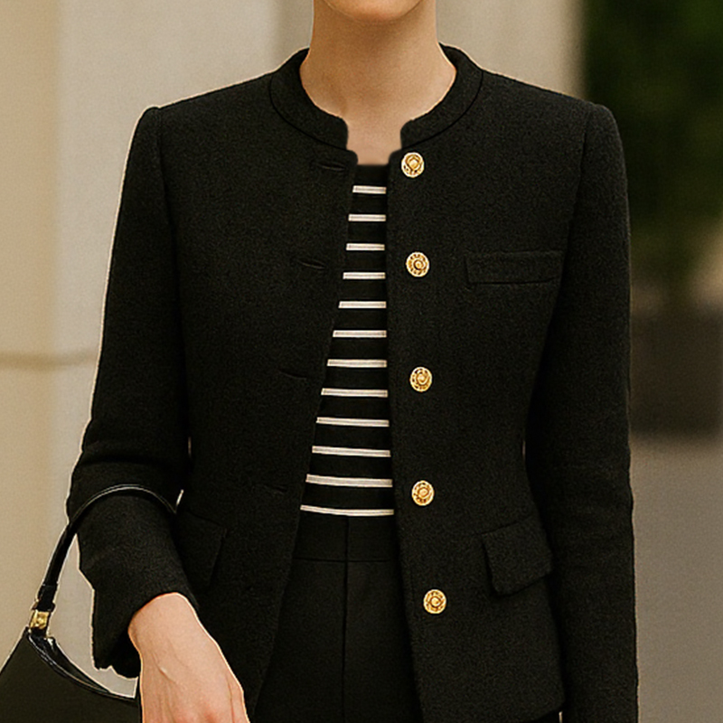欧美风女装秋冬2025年新款小香风黑色金属扣西装外套250565