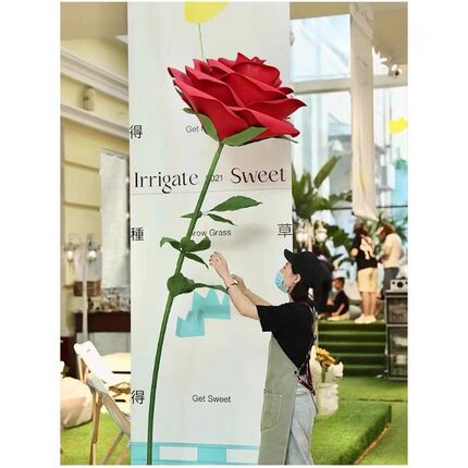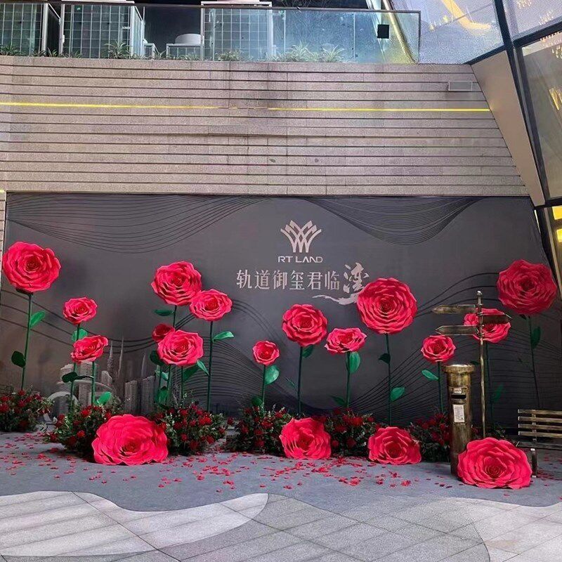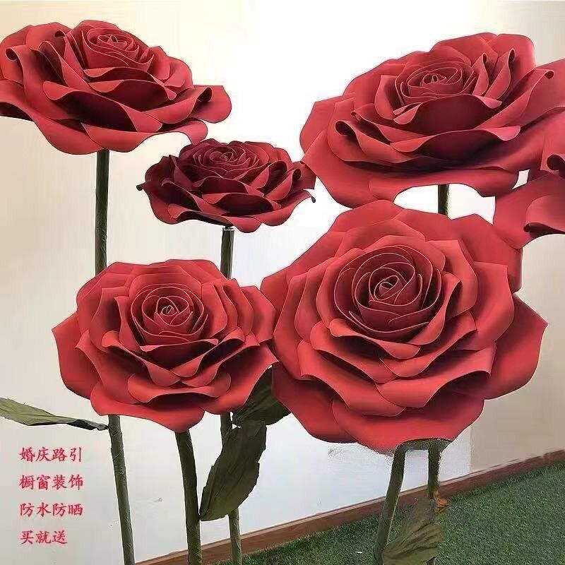 速发巨型大红色玫瑰节日橱窗置陈背户布美打卡景外防水立体纸艺花