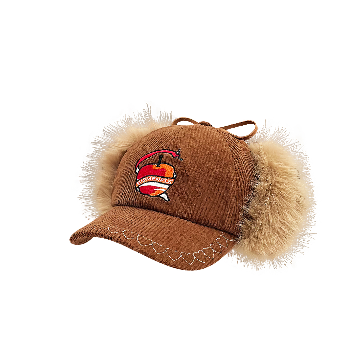 苹果刺绣毛茸茸辣妹护耳鸭舌帽
