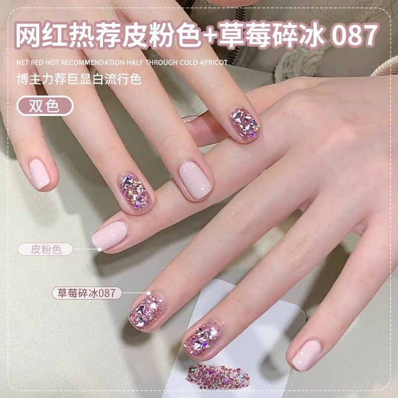 恩妮诗网红爆闪碎钻亮片皮粉色指甲油胶2026新款流行美甲双色套装