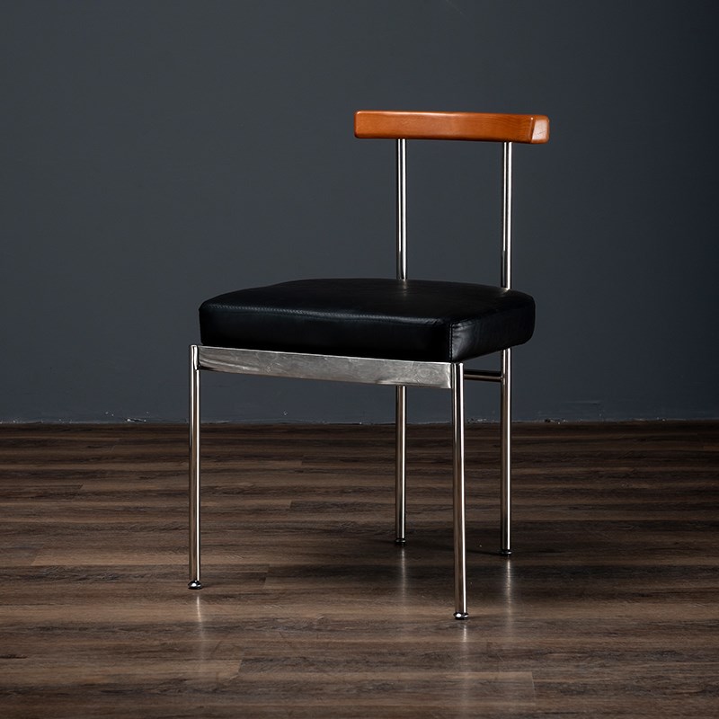 德宜客家用餐椅复古实木靠背餐桌凳子咖啡厅不锈钢设计师轻奢椅子