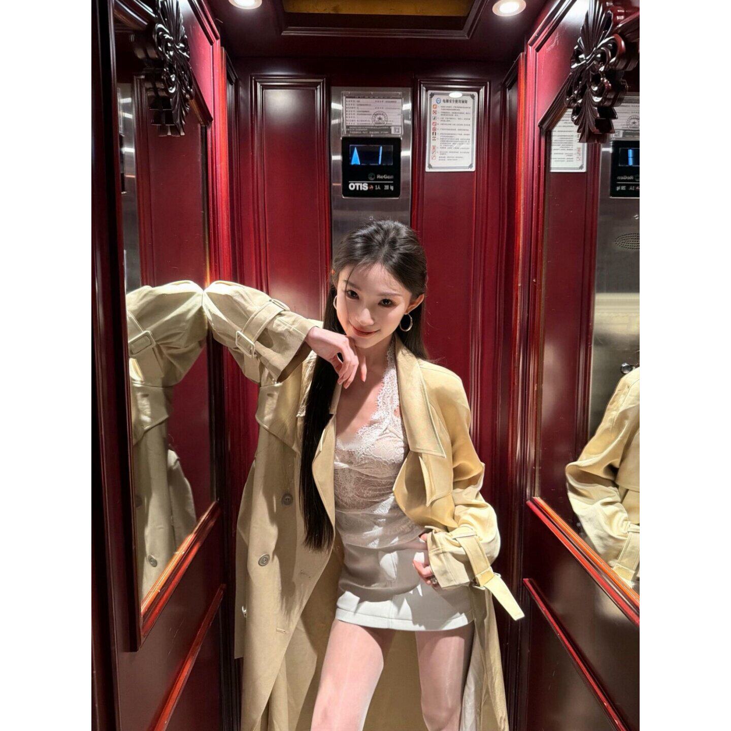 一整套ootd穿搭一整套性感蕾丝V领挂脖无袖吊带背心显瘦半裙短裙