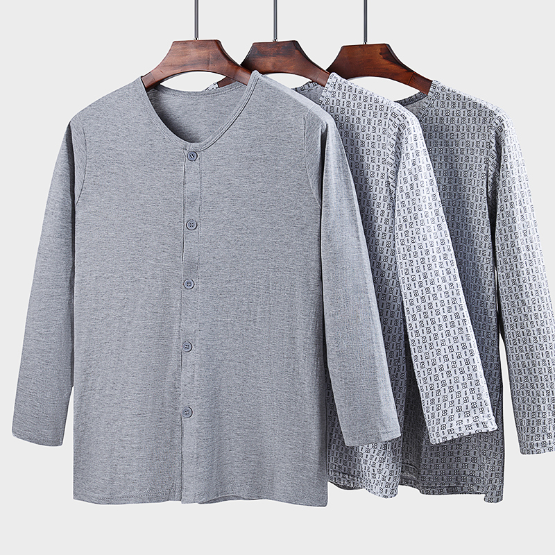 纯棉春秋中老年人大码睡衣上衣单件长袖夏季宽松薄款男士开衫秋衣