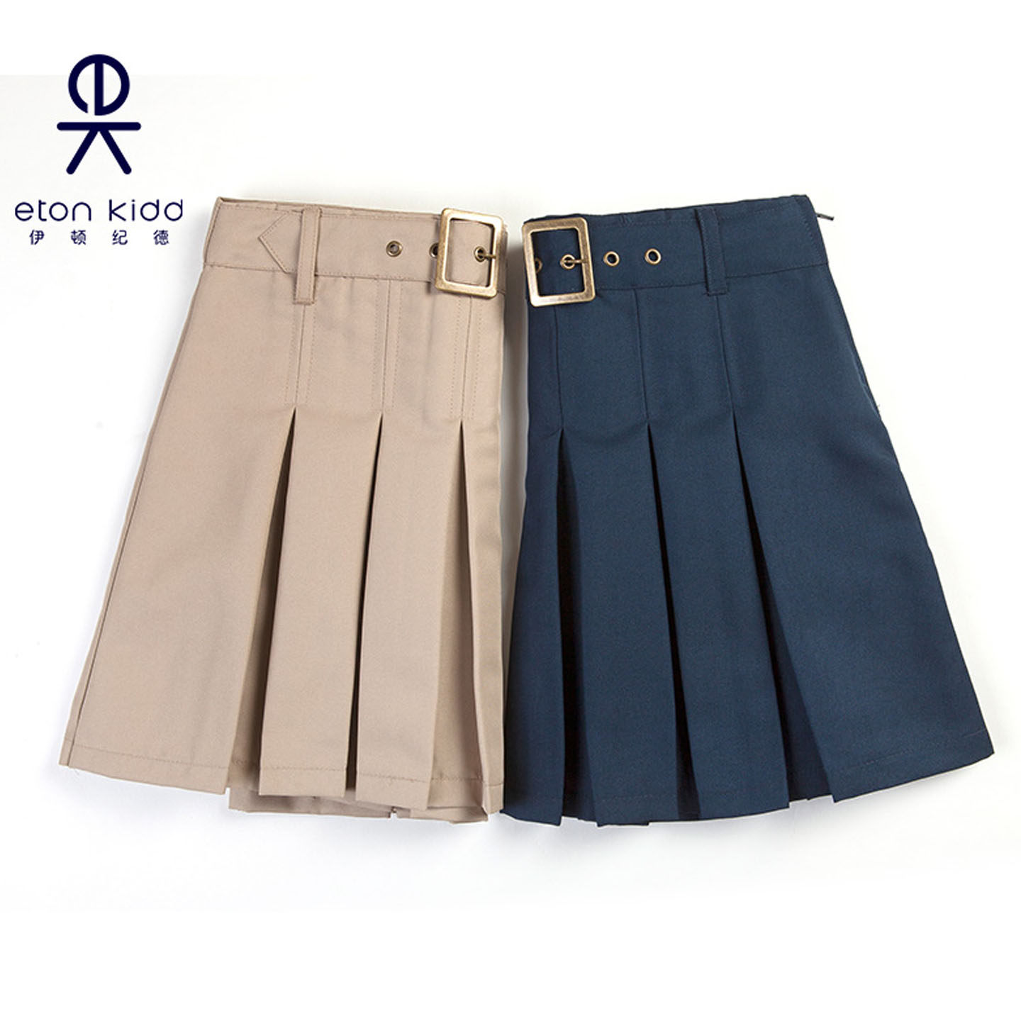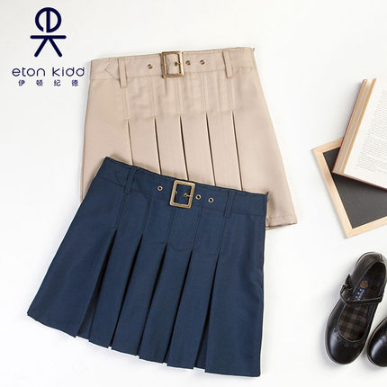 伊顿纪德女童卡其色百褶裙班服校服女孩学生短裙儿童藏青半身裙子