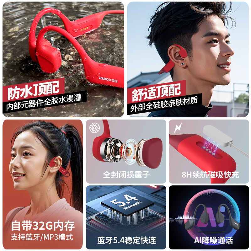 小幽X17真骨传导耳机游泳骑行运动防水无线蓝牙跑步挂耳式不入耳
