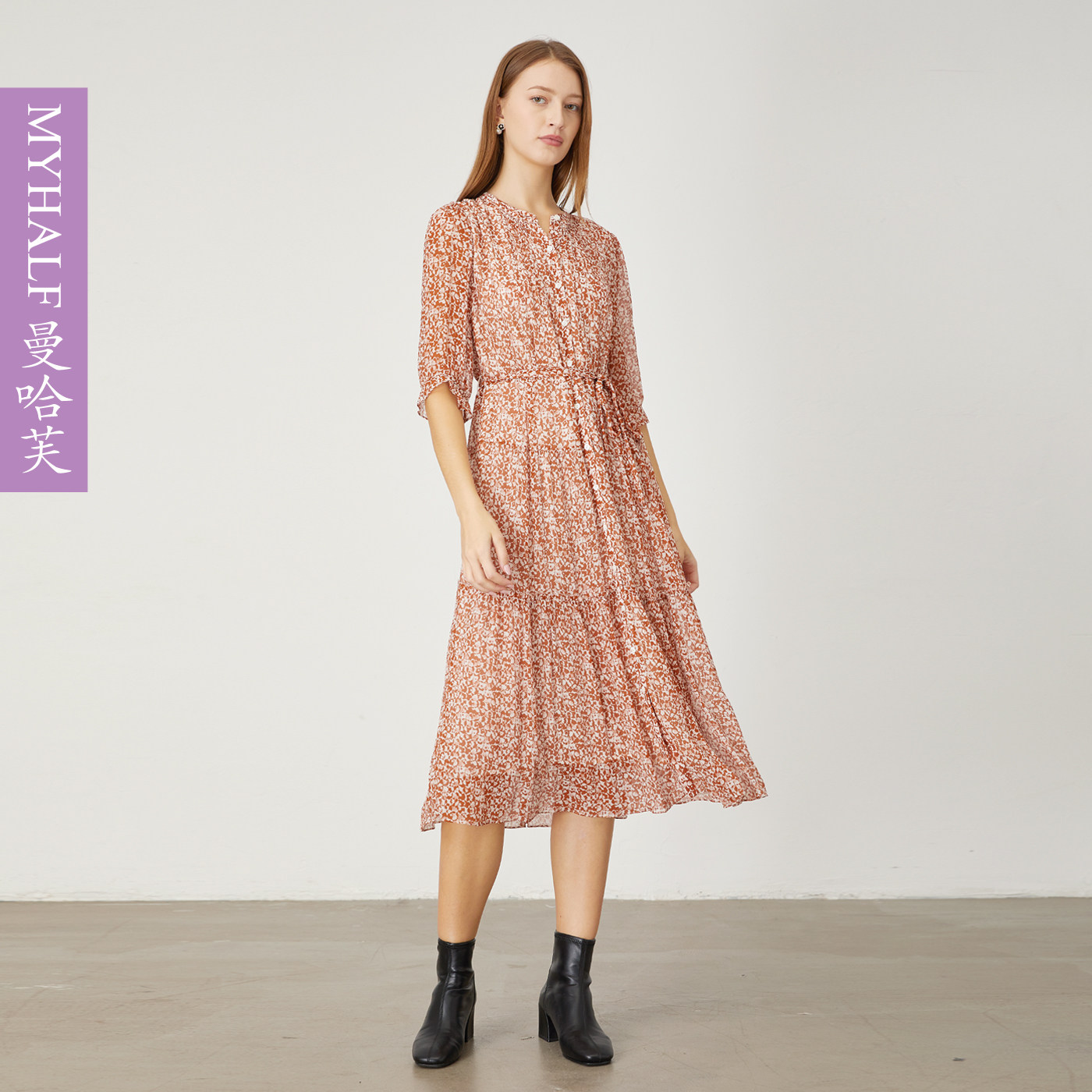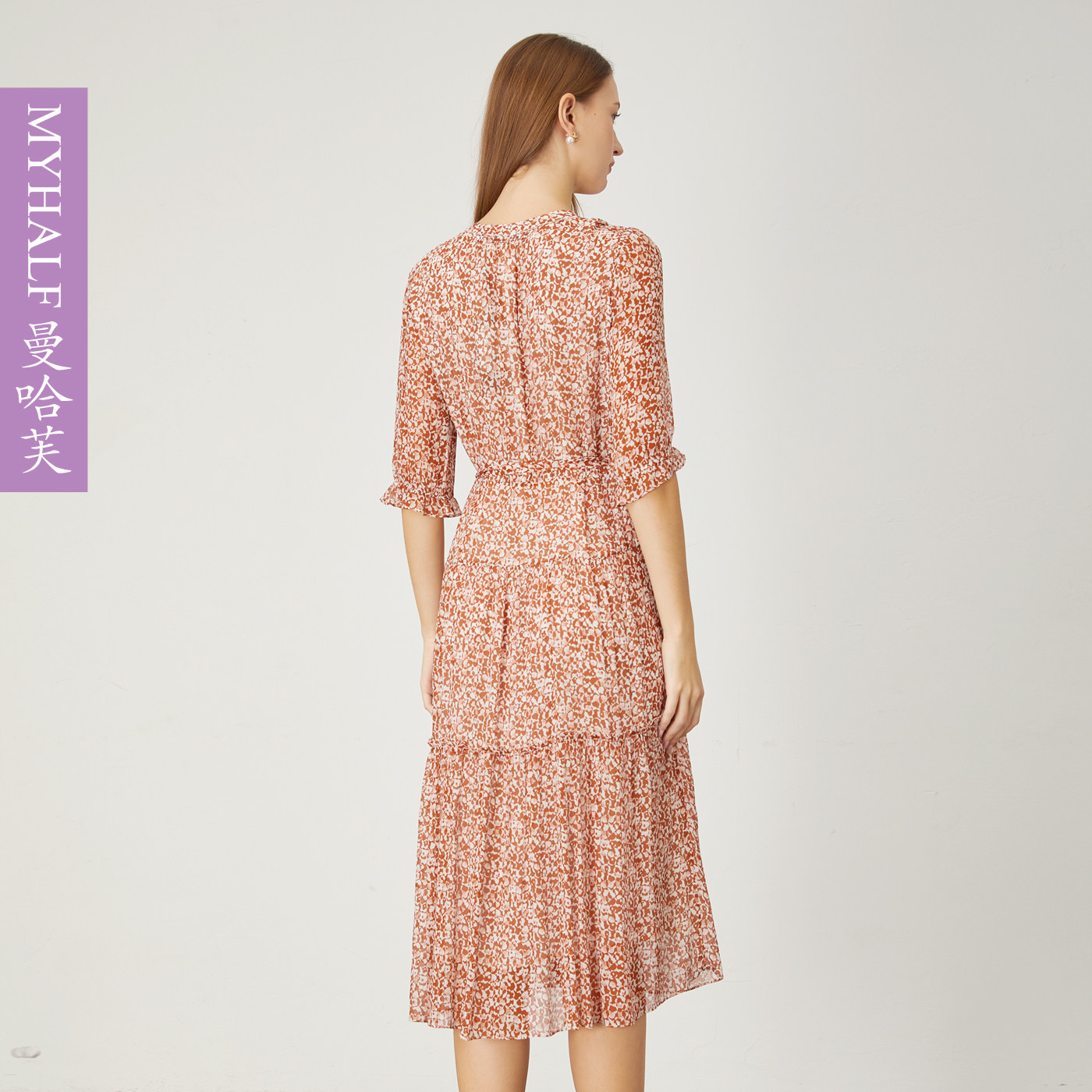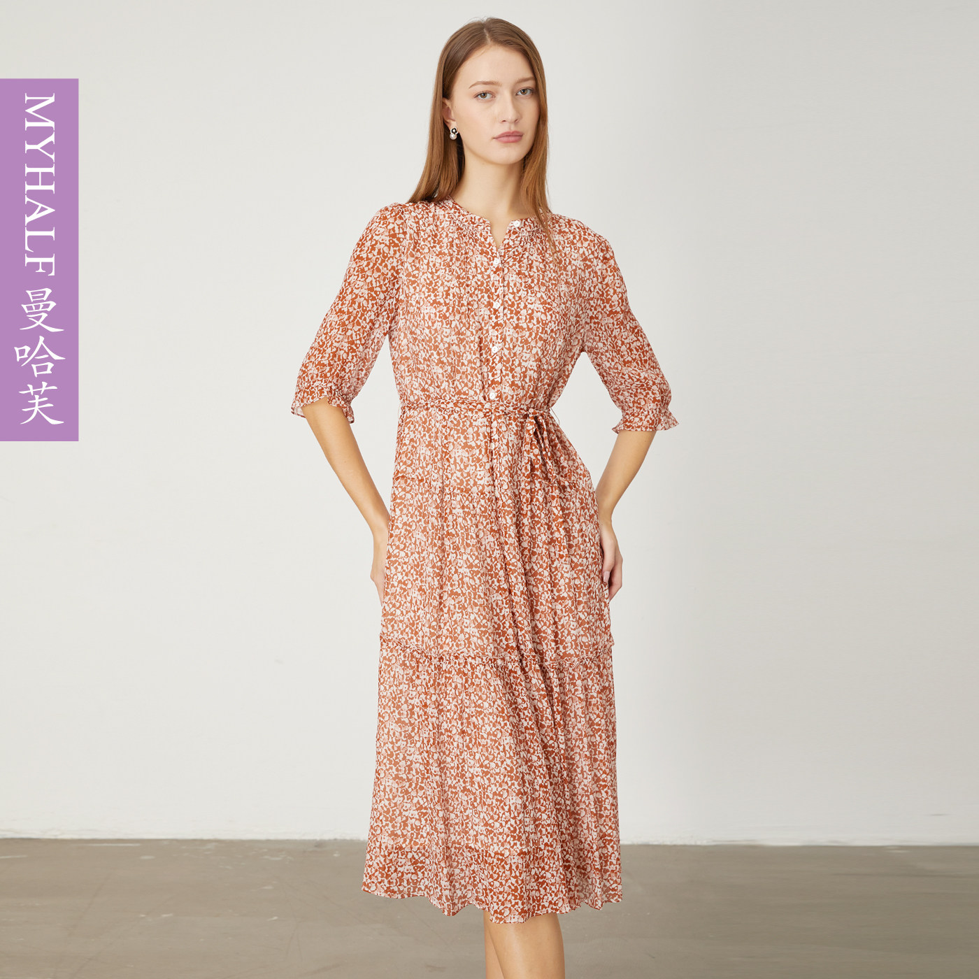 曼哈芙碎花桑蚕丝连衣裙收腰系带海边夏日氛围感假日花中长真丝裙