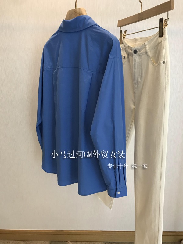 春日心动!复古又显白~23早春新款油画蓝简约宽松显瘦长袖衬衫女