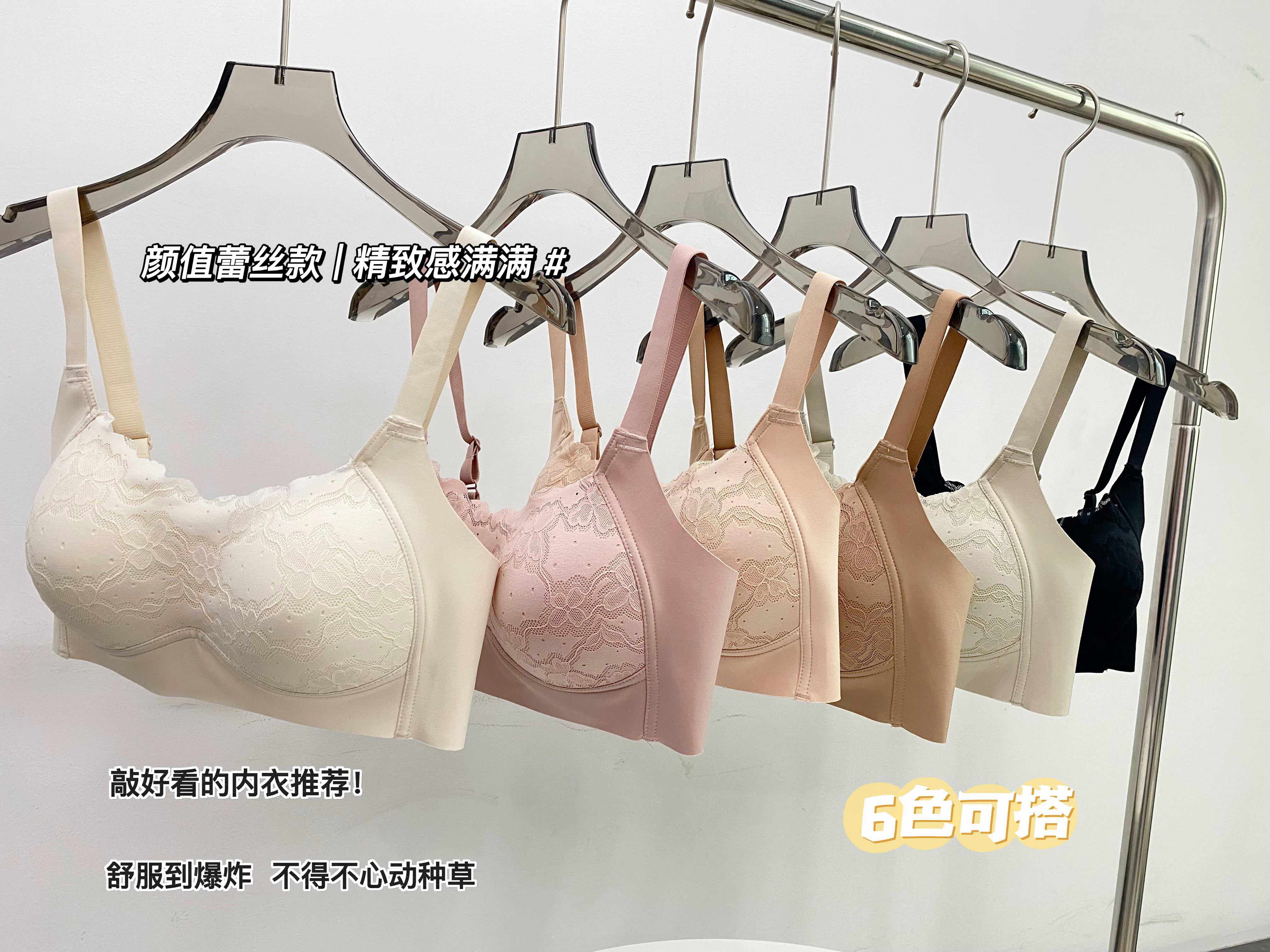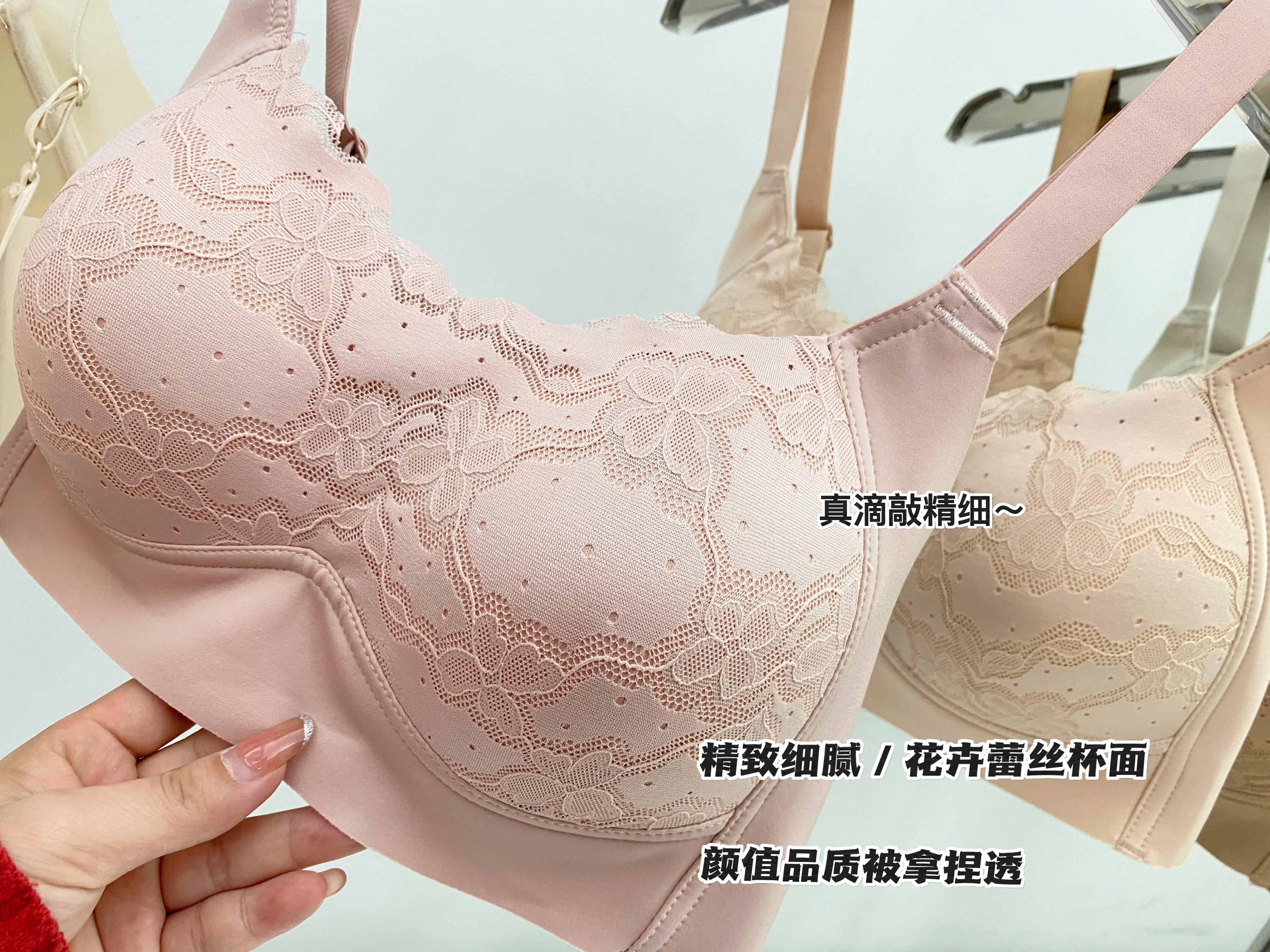 莹嫦内衣蕾丝抹胸零感无痕舒适薄款内衣大胸显小防下垂收副乳胸罩