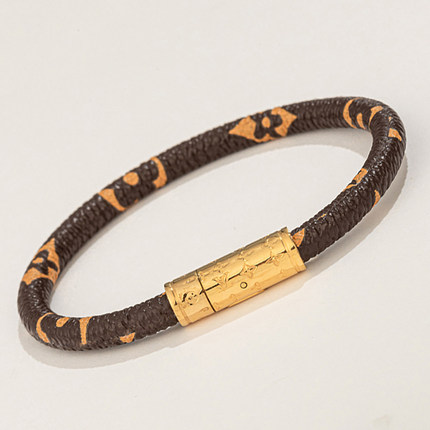新款经典复古老花插扣钛钢金色按钮扣手镯男女同款情侣高端皮手链