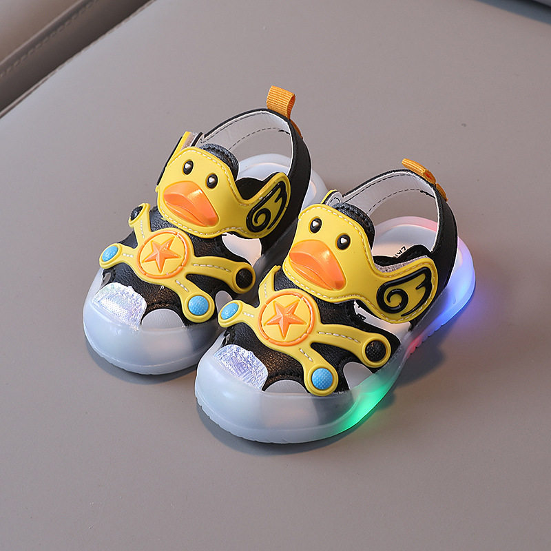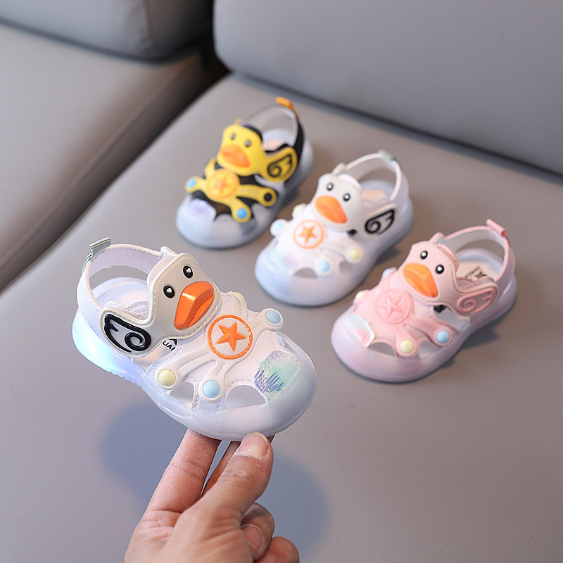 夏季宝宝亮灯凉鞋0-1-3岁2半男女宝宝包头防滑学步鞋卡通透气软底