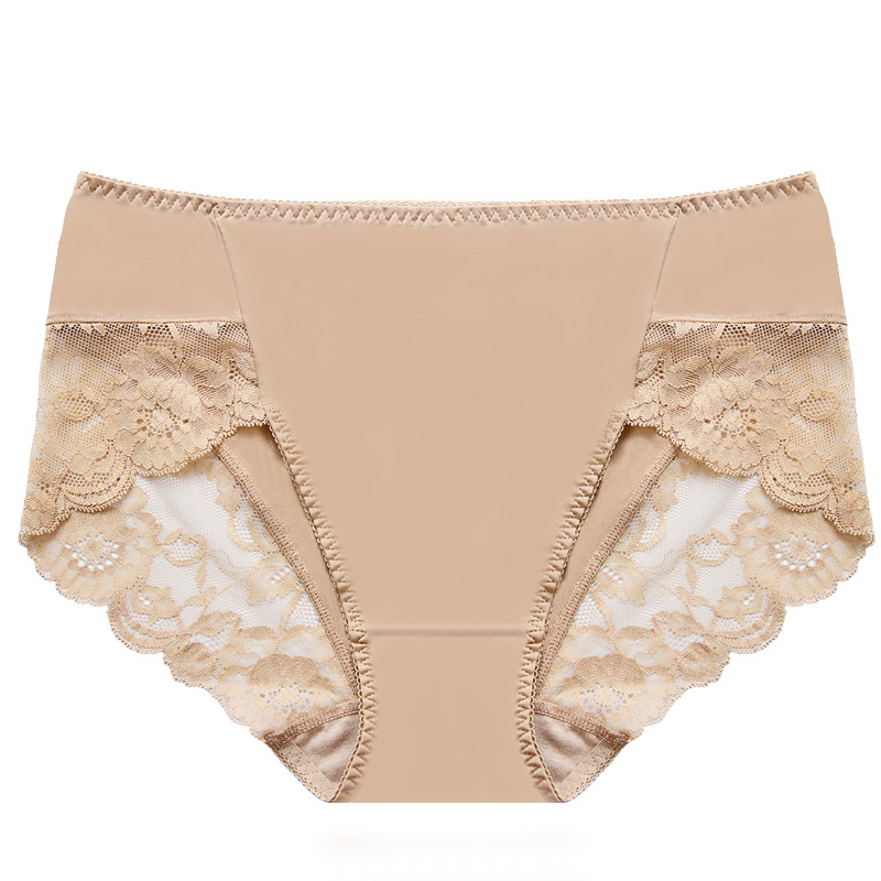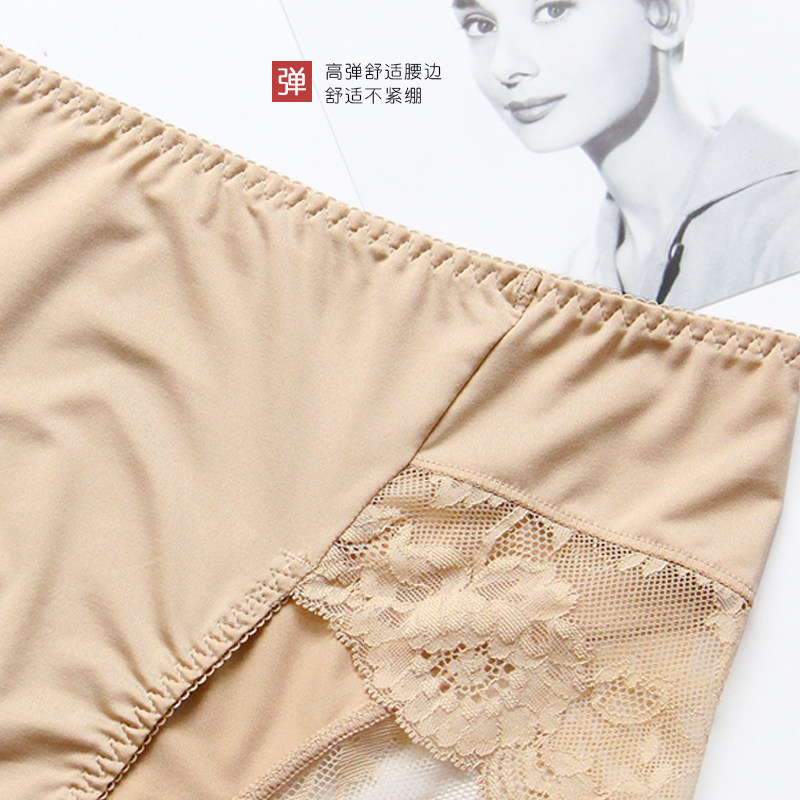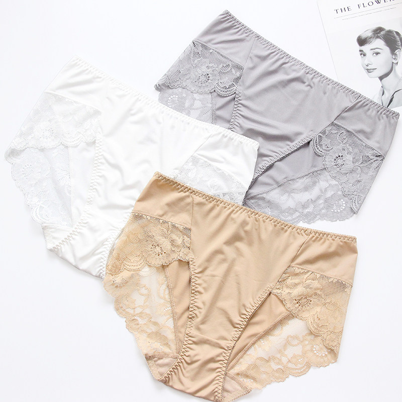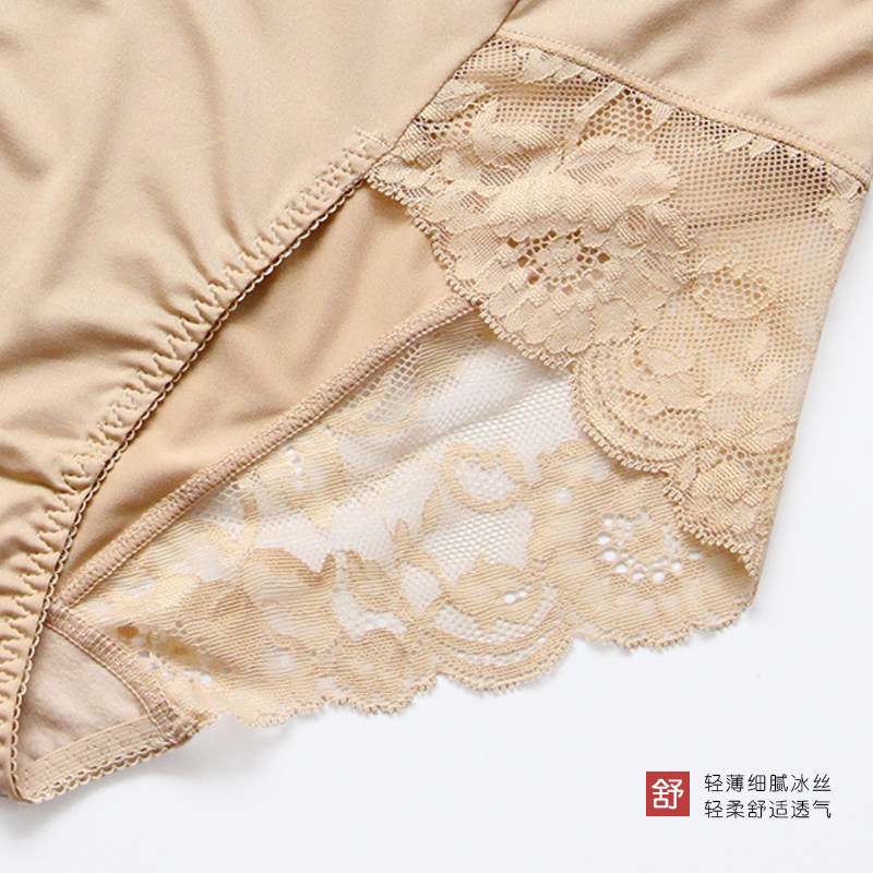 大码内裤女胖mm200斤牛奶丝蕾丝边无痕 性感冰丝收腰高腰加肥加大