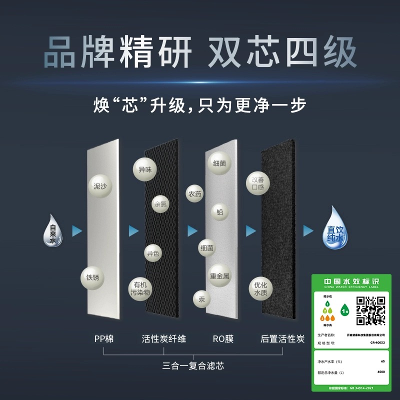 开能奔泰(canature)净水器黑金系列CR-RO400X2反渗透ro膜纯水机