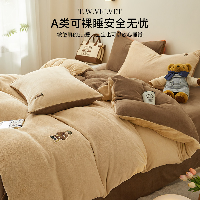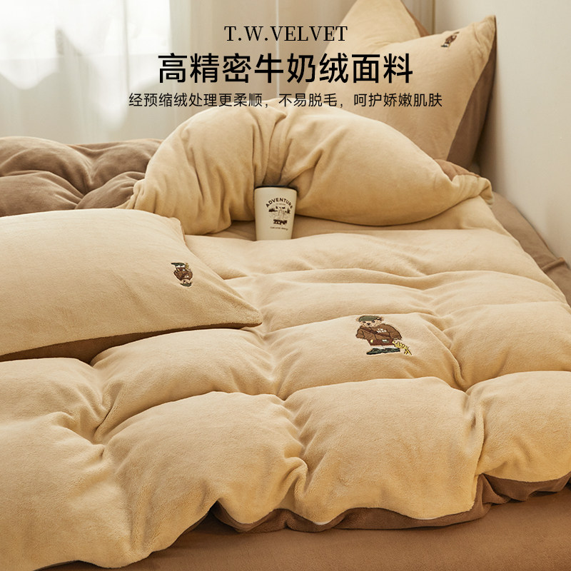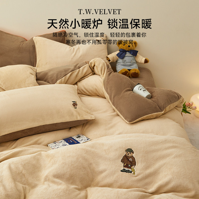 TeenieWeenie小熊牛奶绒四件套美拉德风珊瑚绒被套加绒床单三件套