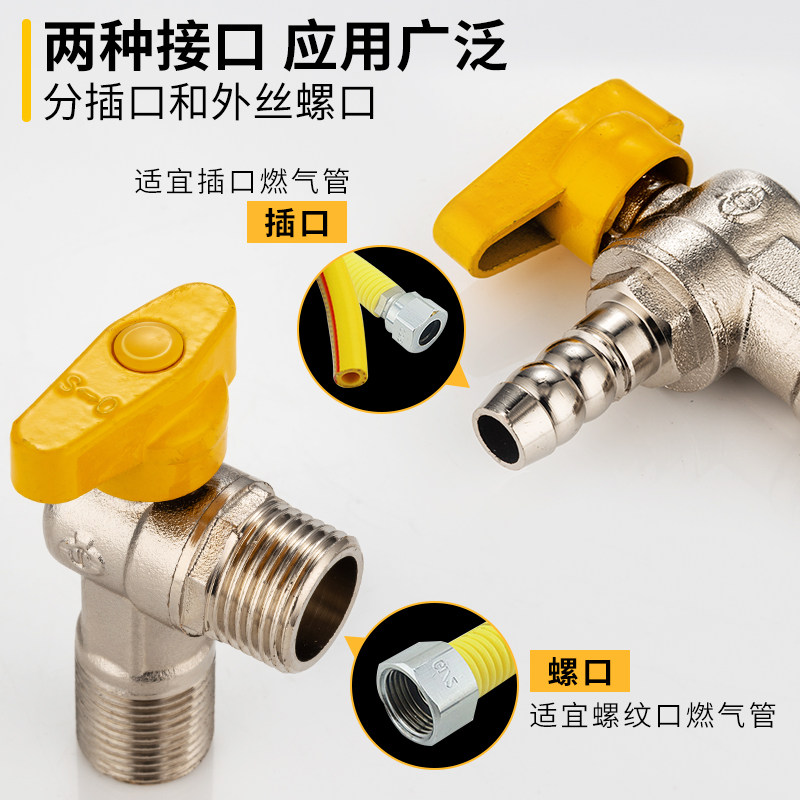 天然气煤气阀门开关家用防漏燃气管热水器壁挂炉黄铜加厚接头配件
