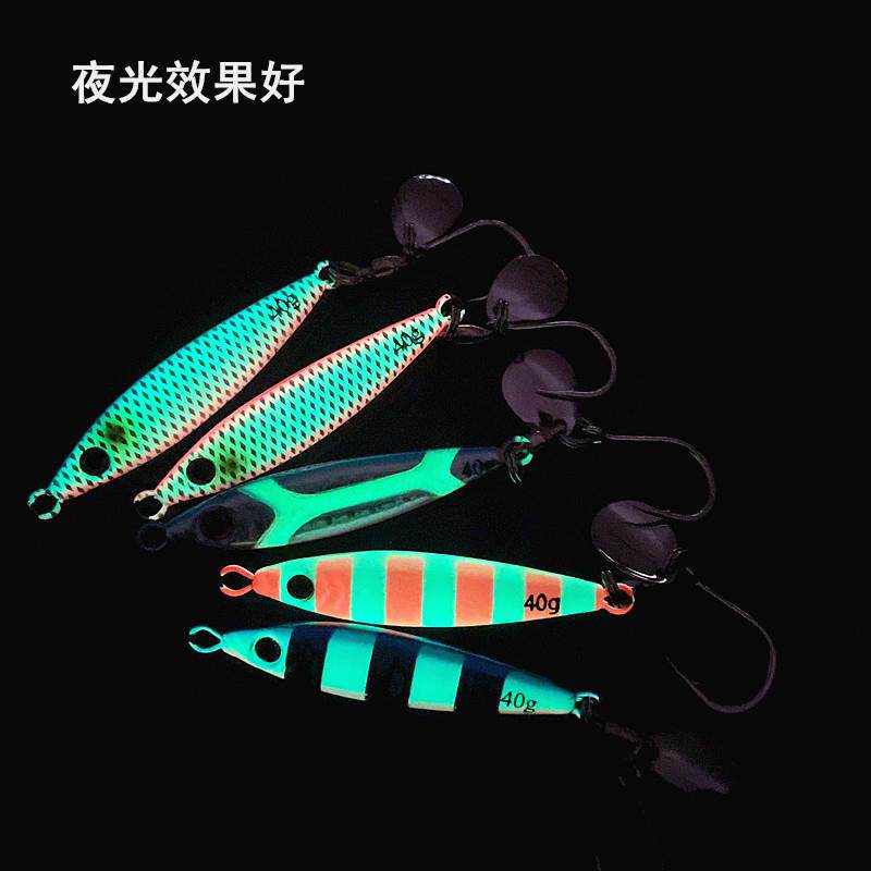 青岛小胖子铁板旋转亮片钩刀鱼鲅鱼马鲛夜光UV蓝光海钓假饵路亚饵