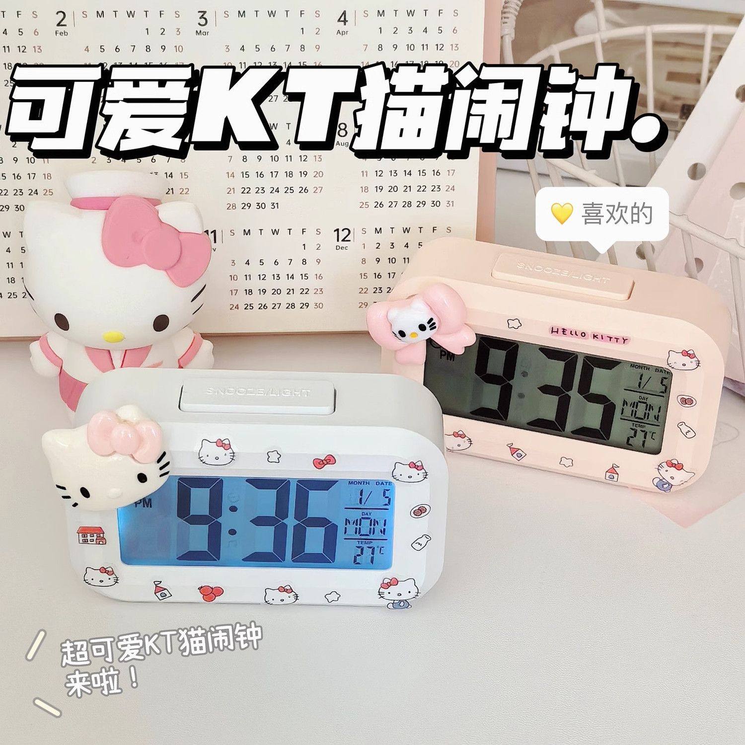 kitty迷你夜光学生智能电子闹钟