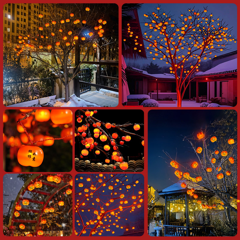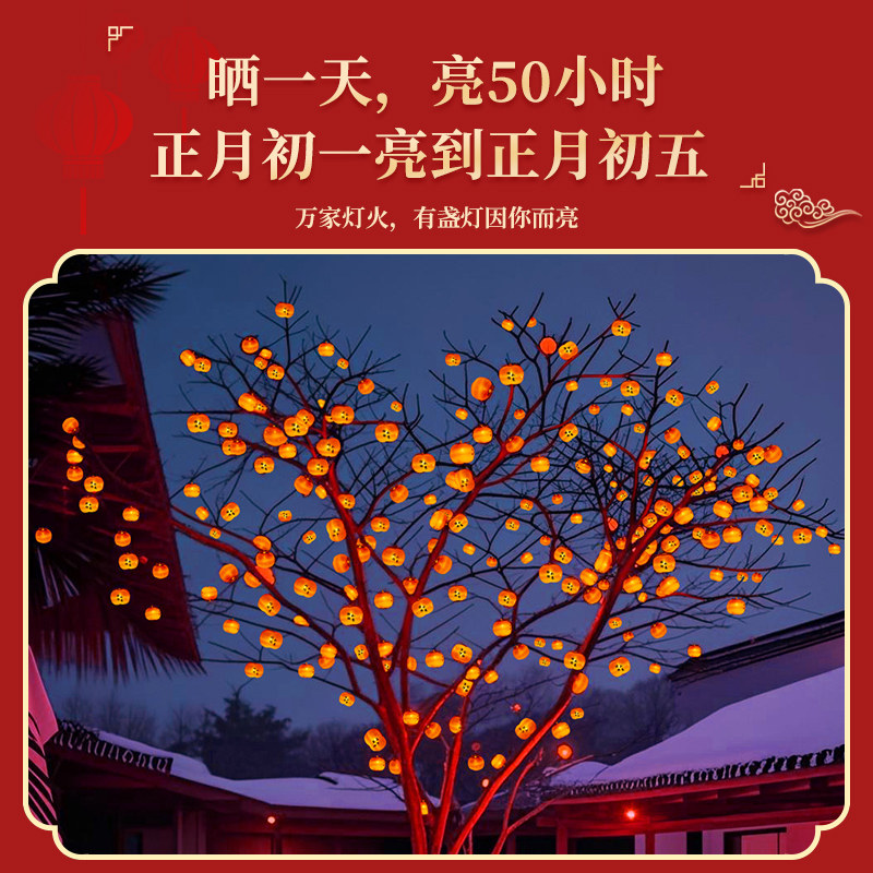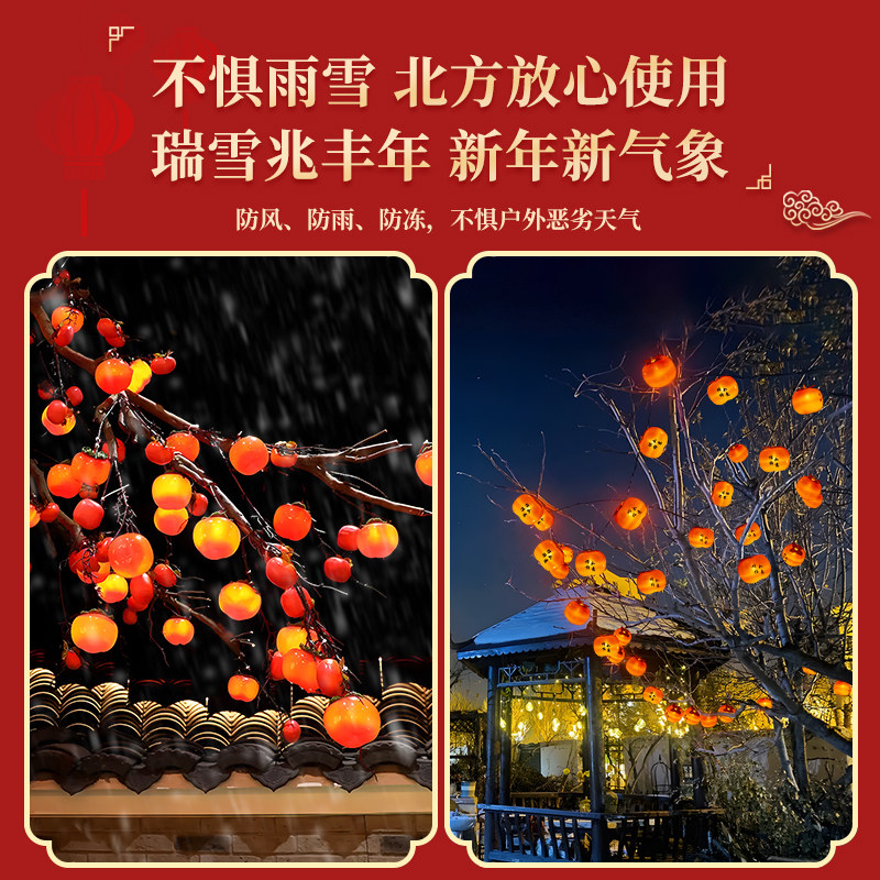 2026新款太阳能柿子灯笼户外挂树上氛围灯串过年新年庭院装饰彩灯
