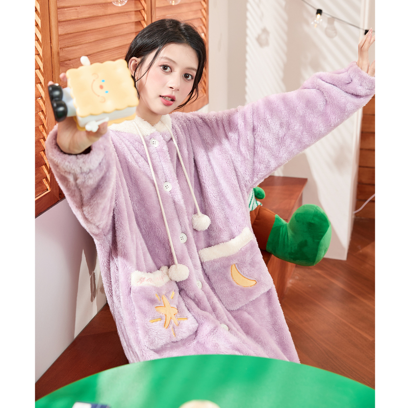 唐狮秋冬新款睡衣女可爱女巫睡袍加绒加厚珊瑚绒家居服甜美学