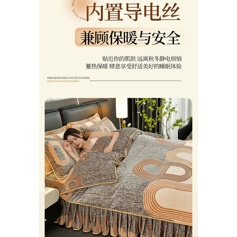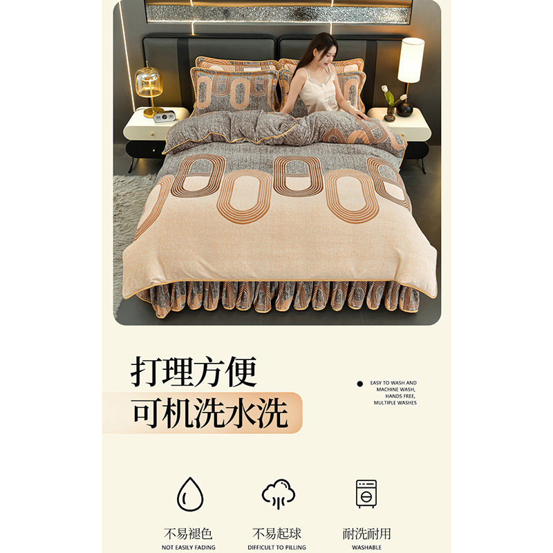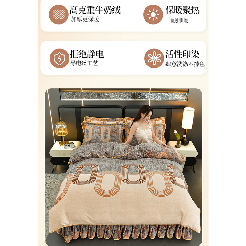 保暖牛奶绒四件套加厚床裙款