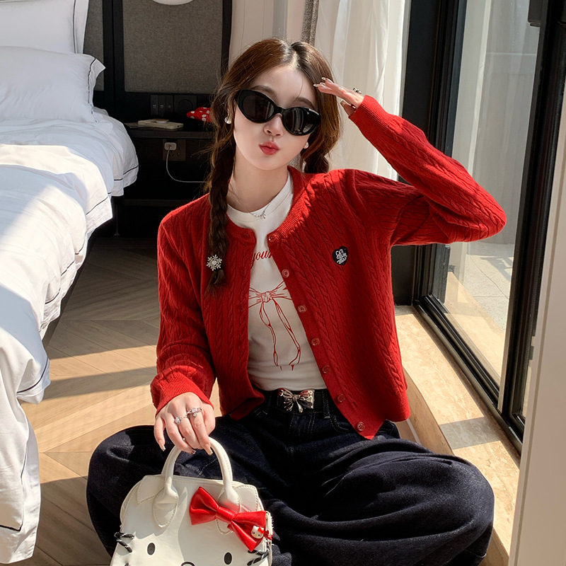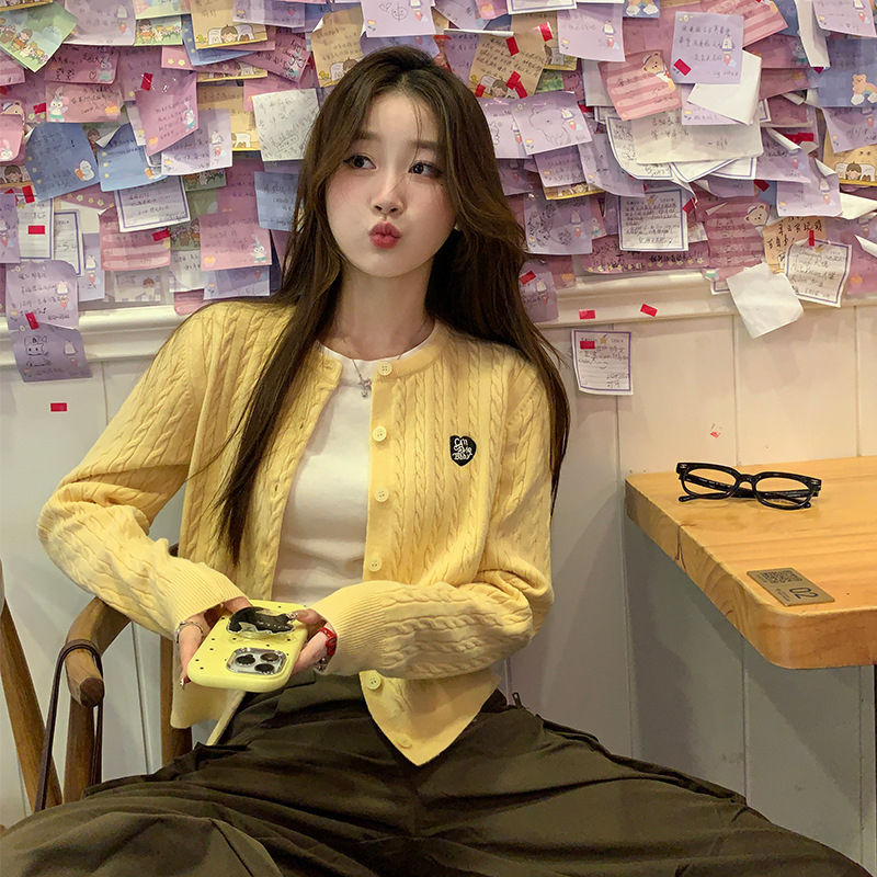 黄色开衫针织开衫外套女2025新款短款慵懒春秋麻花毛衣高级感上衣